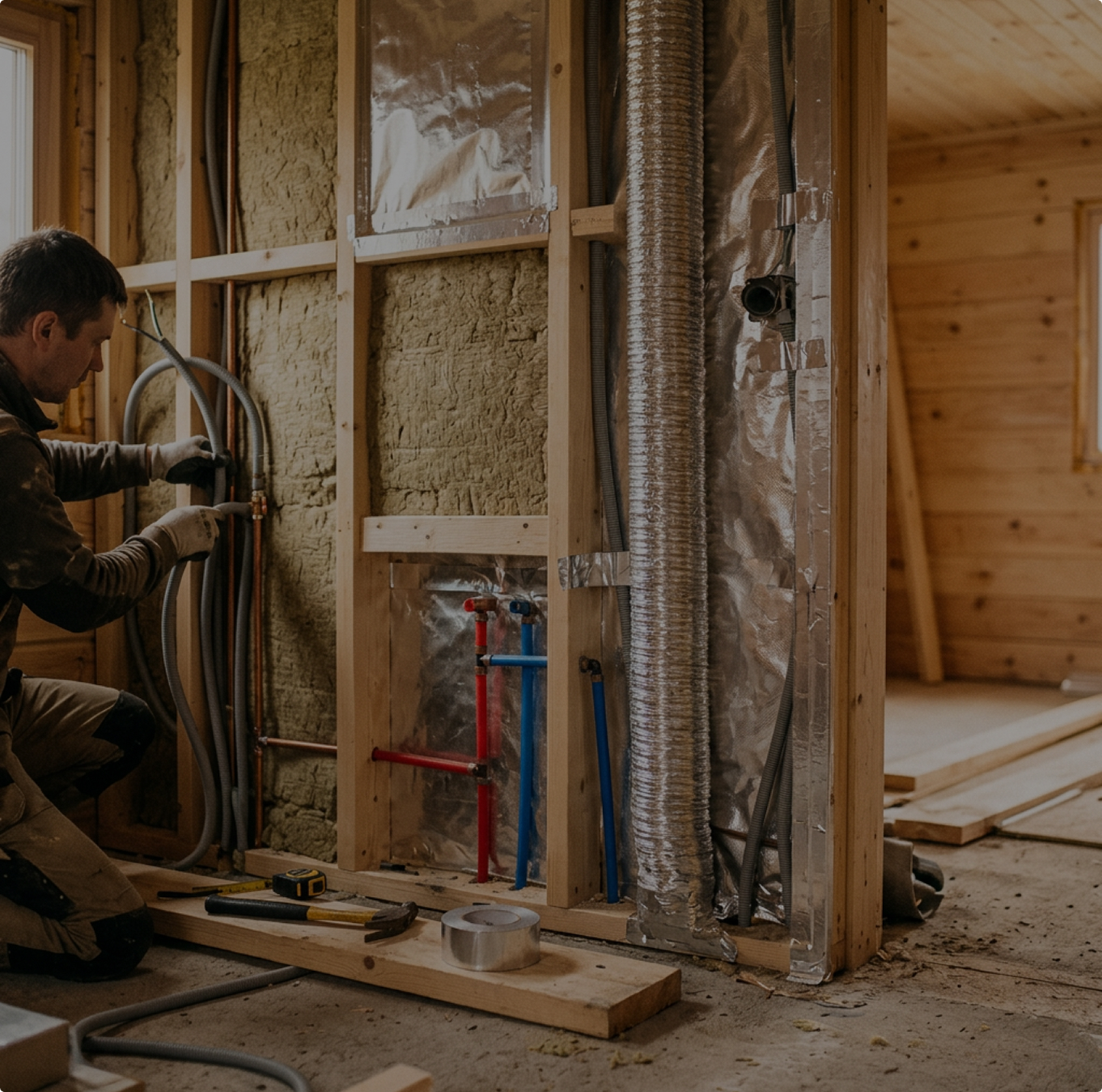 Корректный и надежный монтаж всех элементов и оборудования, которые будут скрыты под обшивкой.