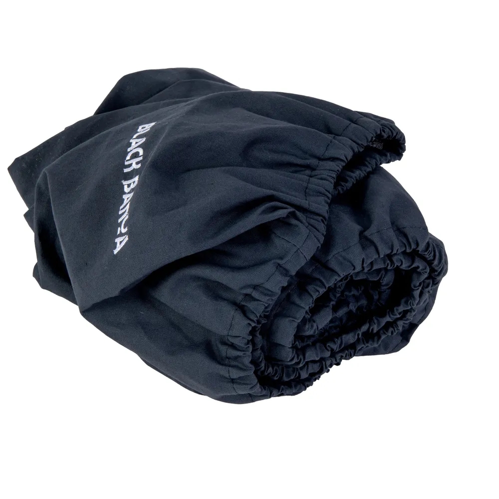 Простынь Black Banya изготовлена из 100% хлопка. Благодаря эластичным резинкам ее легко закрепить на матрасе, валике и подушке. Поскольку резинка пришита по всему периметру простыни, такое решение позволяет ей лучше прилегать к поверхности изделия. Не сгружается, не образует складок во время парения, не сбивается. Так же простынь тактильно приятная, комфортная и очень легкая в обслуживании. Пользуясь простынями Black Banya вы не только увеличите срок службы изделий, но и облегчите за ними уход п