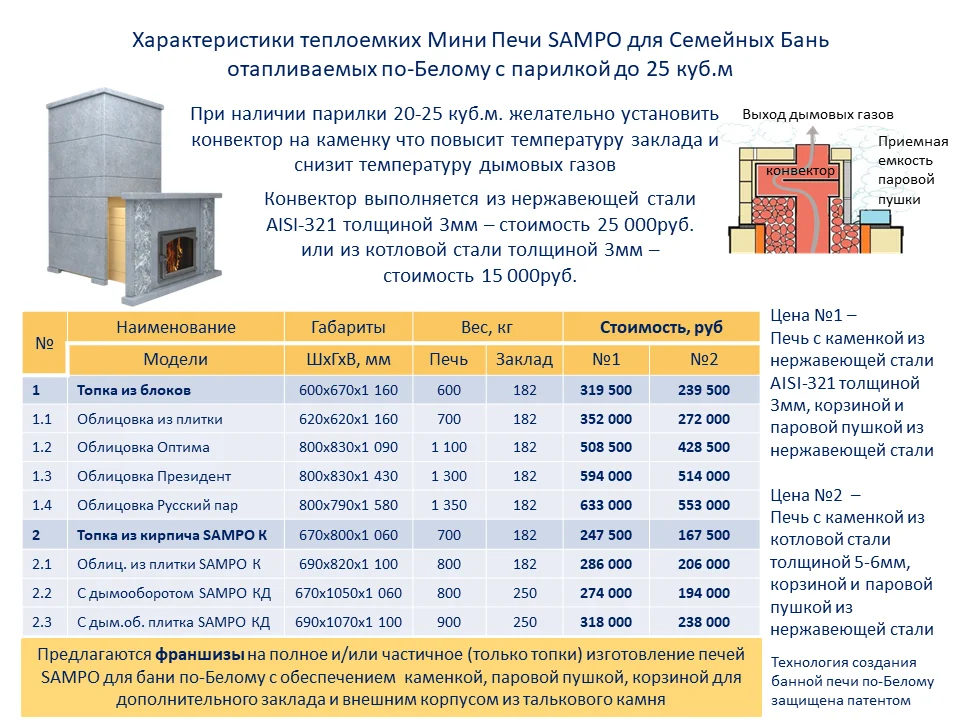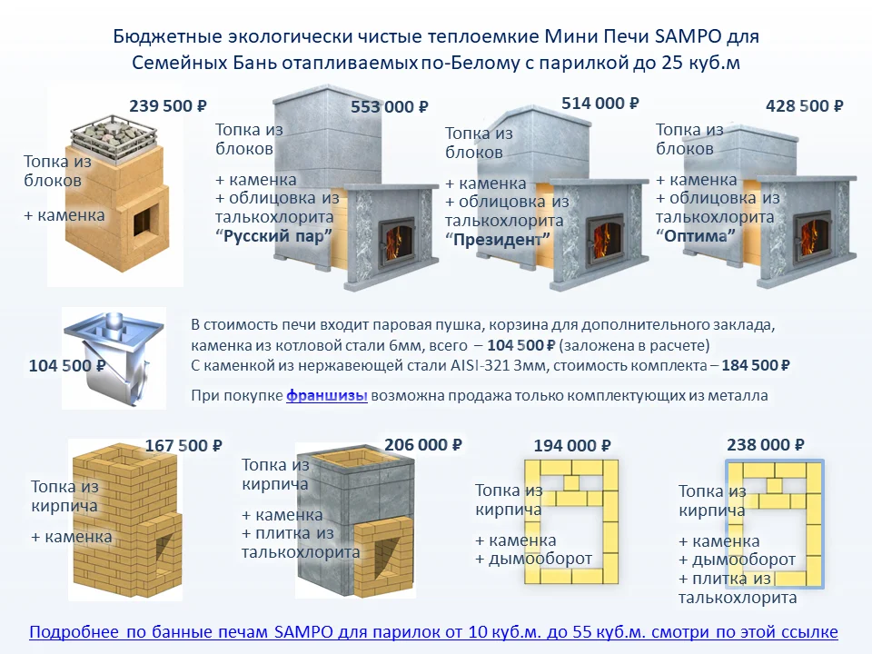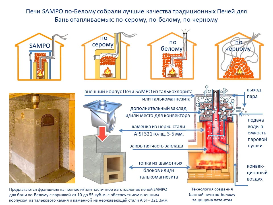 Печи SAMPO для Бани по-Белому имеют ключевые отличия перед печами с металлической топкой для бани по-белому: