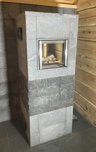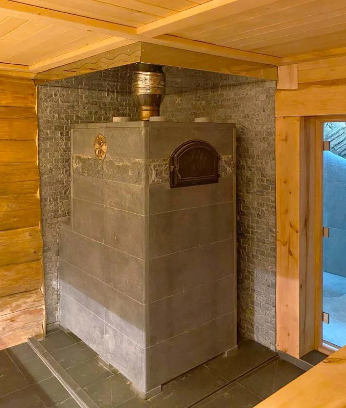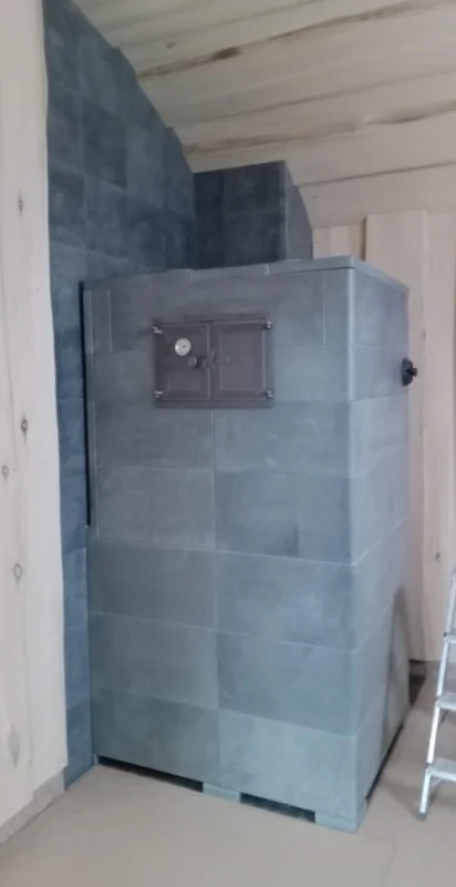 - Длительную, до 4 часов без дополнительной подтопки, стабильную температуру в парильном помещении 60–70°C.