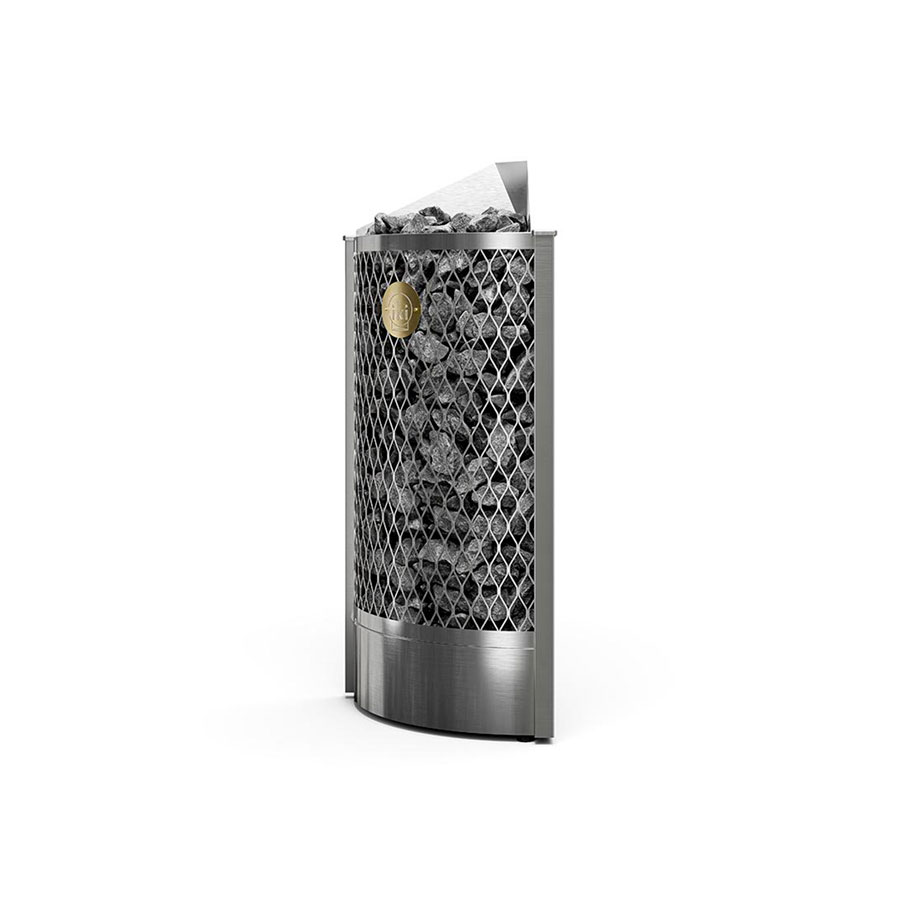 Эта электрическая каменка IKI специально предназначена для установки в углу. Идеальна, когда место в парной ограничено. Спереди расположен традиционный отсек для камней, закрытый сеткой. Задняя поверхность закрыта стальными пластинами. Печь можно дополнить защитным фланцем. Это позволит вмонтировать её в пол или полки. Доступны модели с встроенным управлением и под выносной пульт.