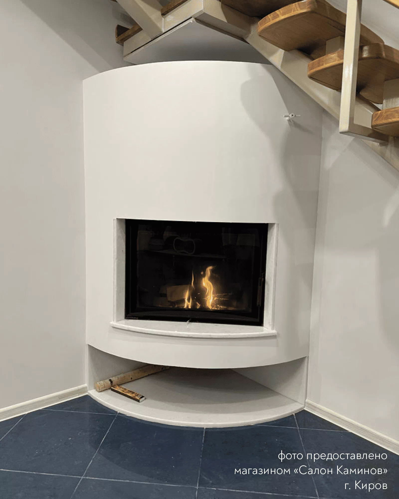 К внешнему, выполненному из котловой стали, приварены п-образные профили (рёбра жёсткости) таким способом, что в металле, во время разогрева, не возникает деформации (предварительно напряжённая конструкция). Это обеспечивает неизменность формы, эффективность теплопередачи и долговечность. Футеровка формирует структуру, несущую на себе всю термическую нагрузку. В каминной топке М 700 установлена футеровка вермикулит, обладающая высокой теплоотражающей способностью, что значительно увеличивает КПД и коэффициент сгорания. Он обладает низкой теплопроводностью, минерал способен усилить огнестойкость других печных материалов, имеет высокие показатели огнеупорности, является химически инертным и теплостойким веществом, обладает высокими изоляционными свойствами. Кроме того, футеровка вермикулитом имеет эстетически приятный, монолитный вид. Бесколосниковая система улучшает сгорание и увеличивает КПД Вид на огонь