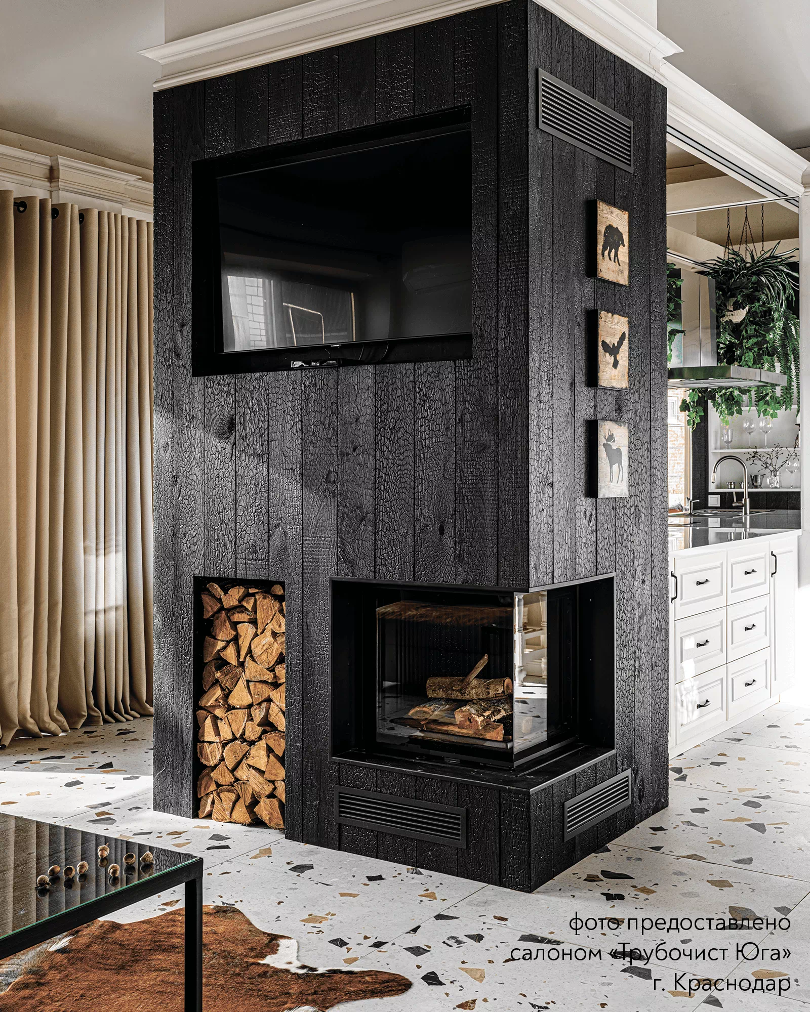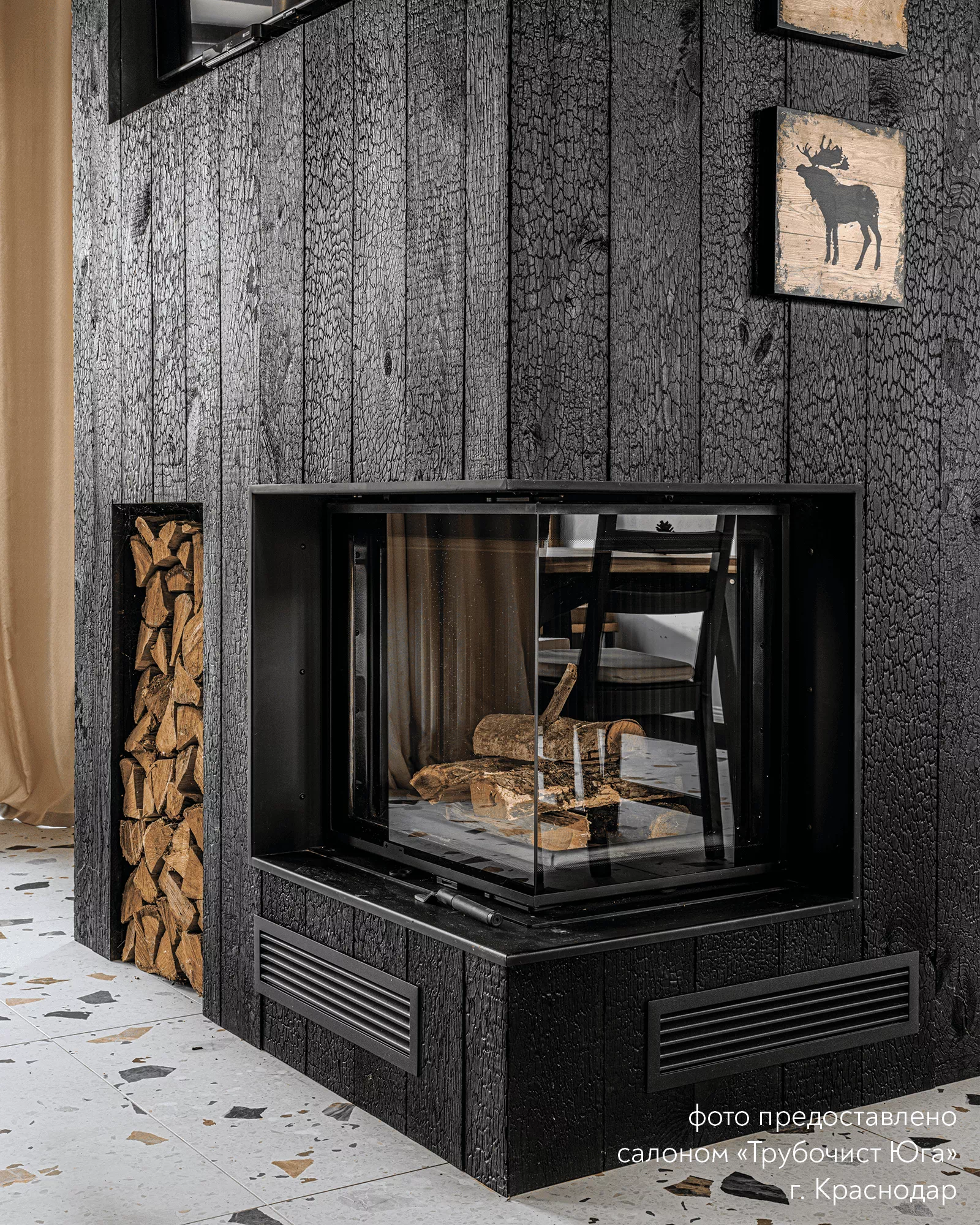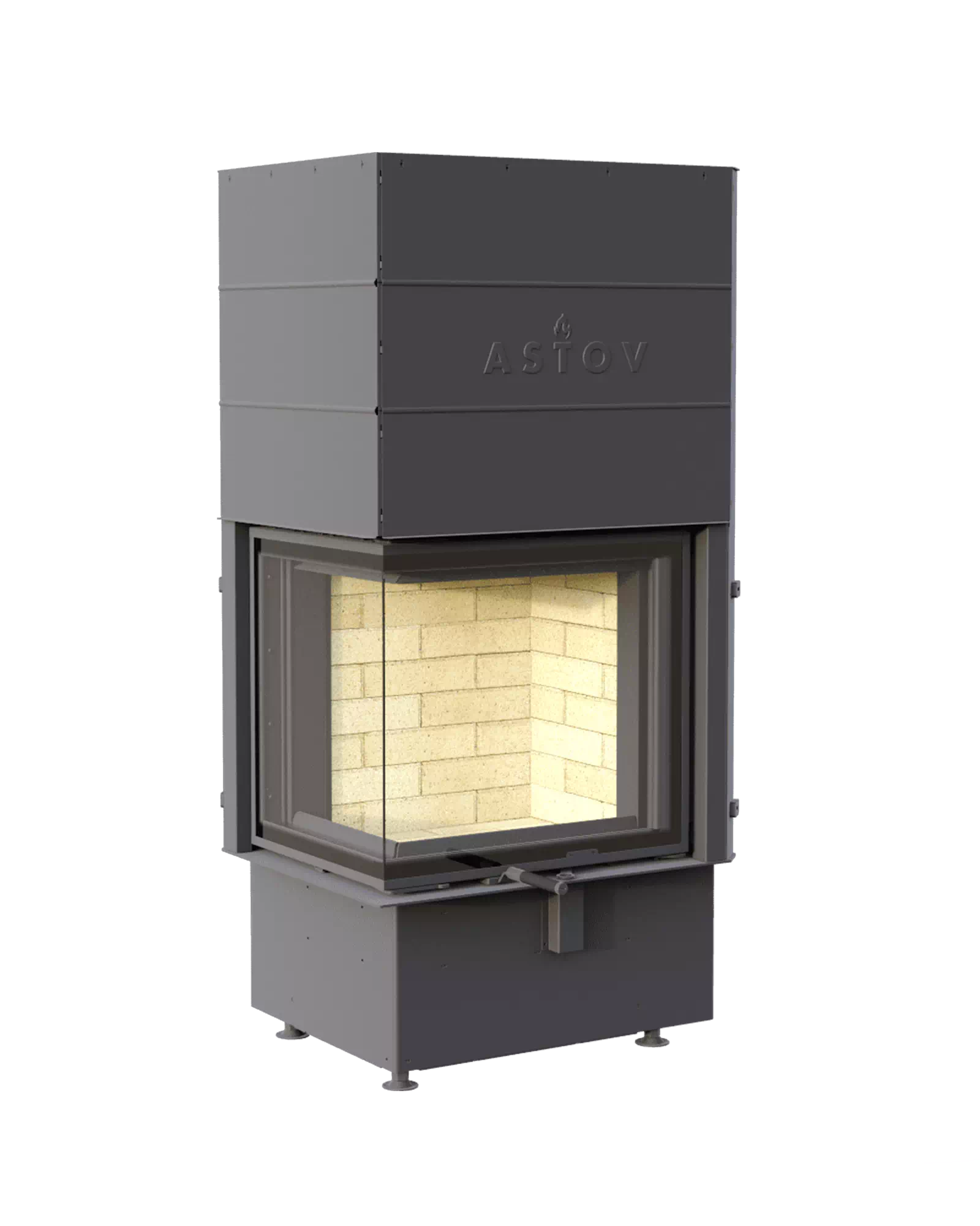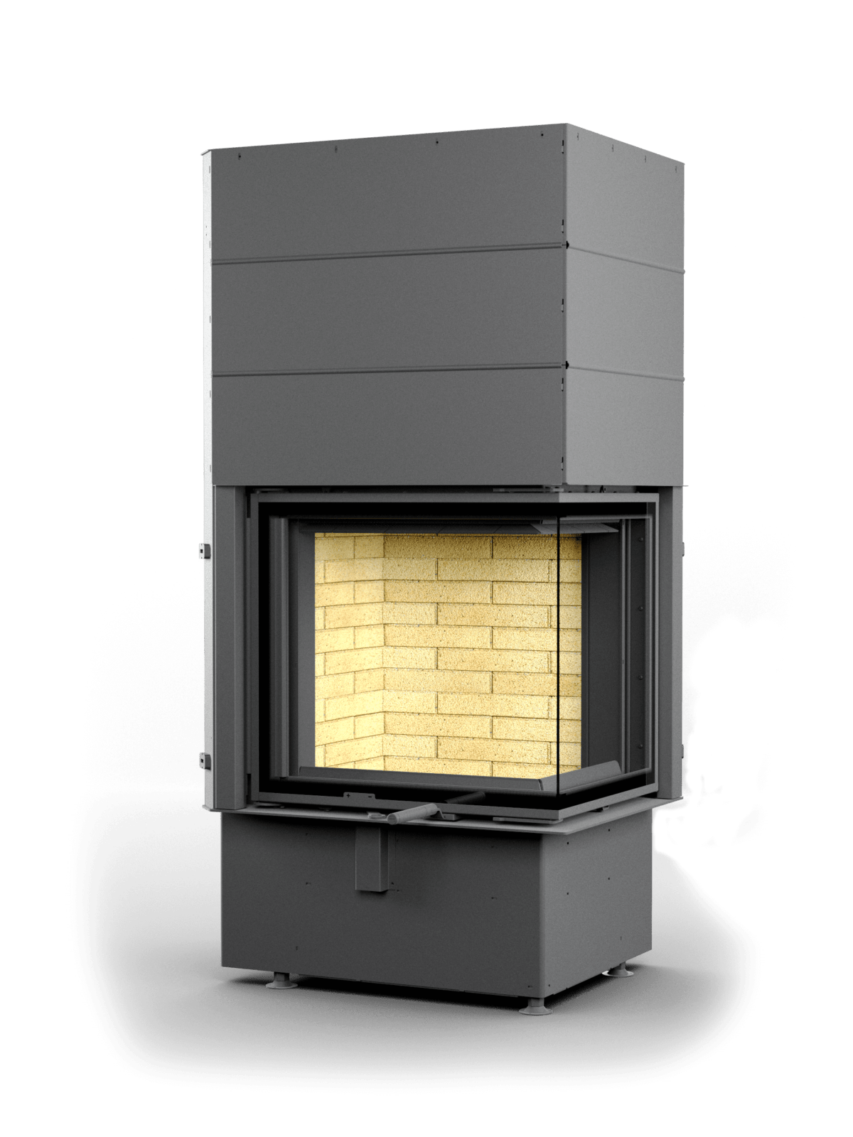 Топка имеет двойной корпус. Футеровка формирует структуру, несущую на себе всю термическую нагрузку. Шамот, керамические вставки – стенки разогреваются продолжительно, температура повышается дольше, чем с металлическим содержимым. Превосходно для любителей долго пожечь. Панели 3Д – сбалансированный вариант, тепло распределяется равномерно, а внушительная масса поддерживает высокотемпературное горение. Широкие стальные пластины для стиля хай-тек. Вид на огонь