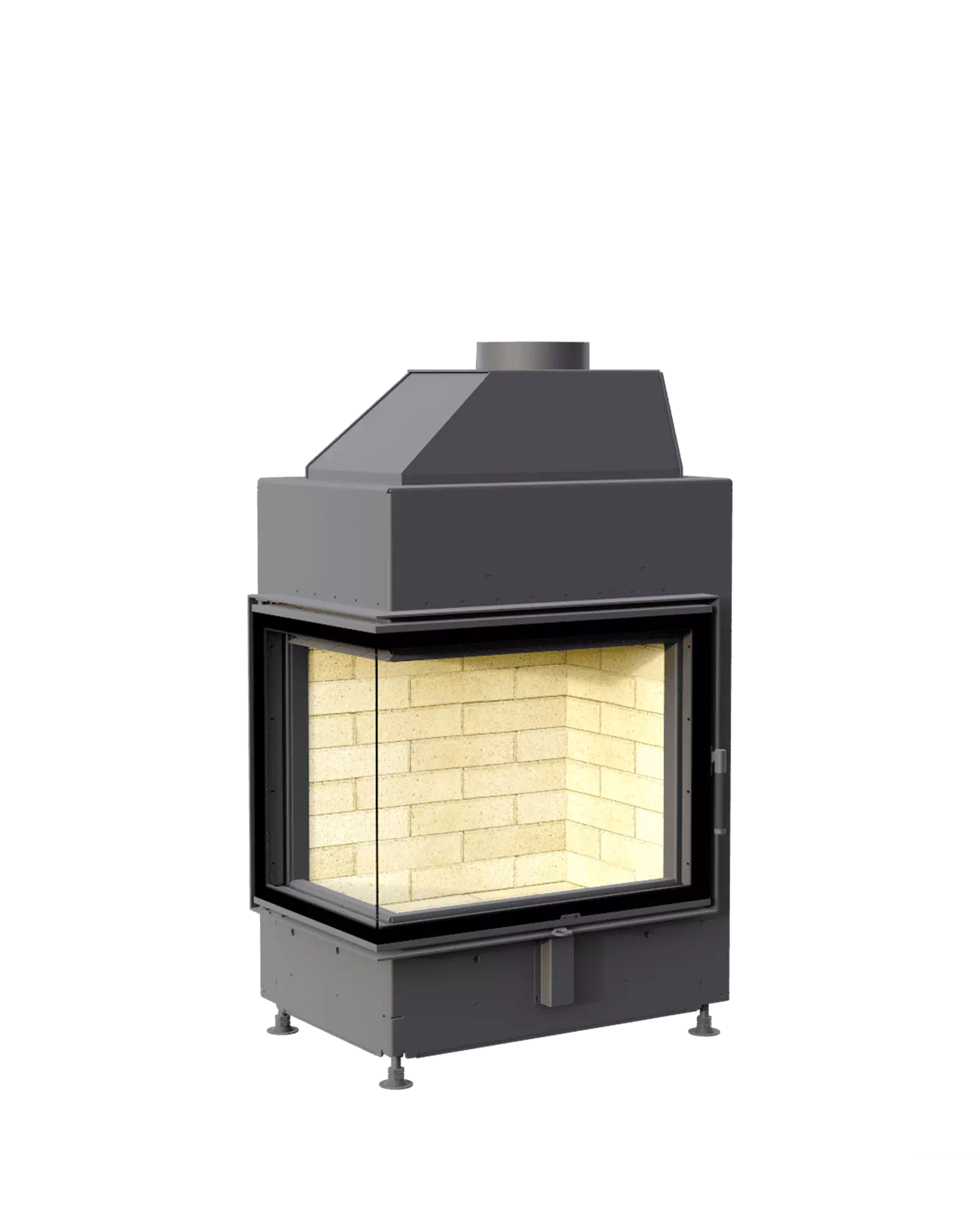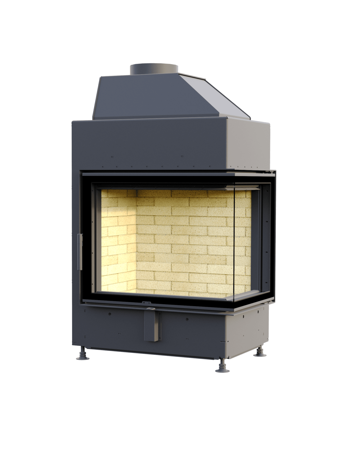 Футеровка формирует структуру, несущую на себе всю термическую нагрузку. Шамот, керамические вставки – стенки разогреваются продолжительно, температура повышается дольше, чем с металлическим содержимым. Превосходно для любителей долго пожечь. Панели 3Д – сбалансированный вариант, тепло распределяется равномерно, а внушительная масса поддерживает высокотемпературное горение. Широкие стальные пластины для стиля хай-тек. Вид на огонь