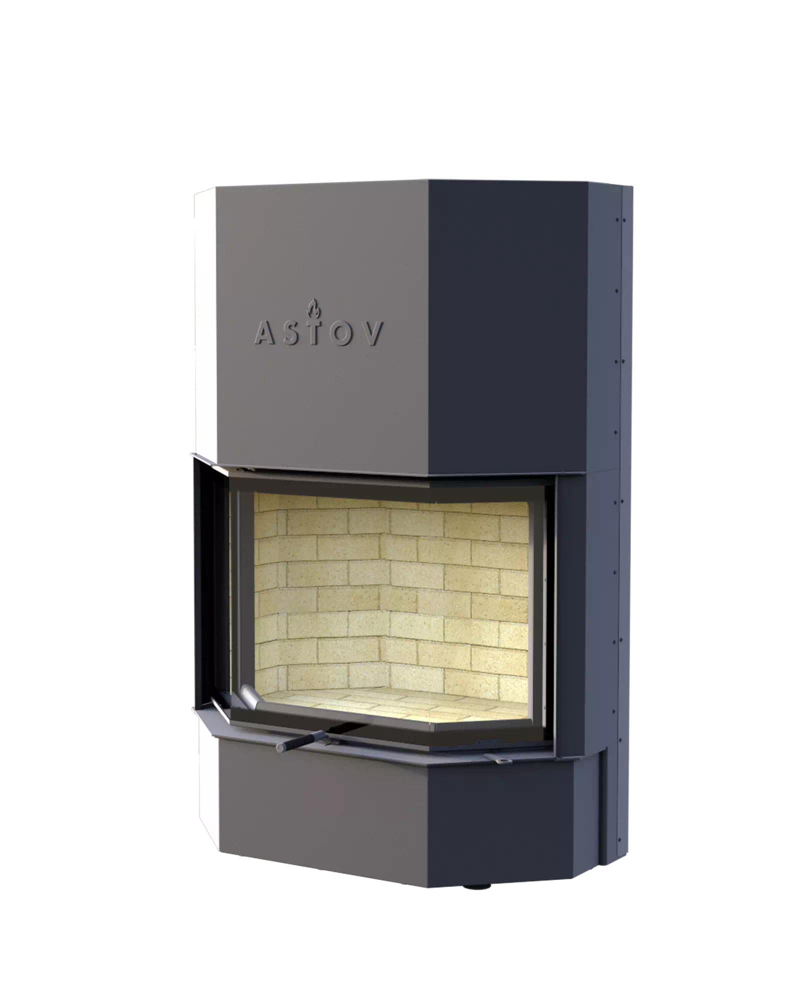 Оригинальное творение с трёхгранным призматическим стеклом. Глубокий очаг создаёт неповторимый колорит языков пламени. Гармоничные пропорции обуславливают наилучшее созерцание огня. Шелкография завершает обрамление, гармонируя с внутренним убранством топочной части. Увеличенный воздушный канал на дожиг предохраняет стеклокерамику от нагара. Застеклённая поверхность остаётся неизменно чистой, пока вы протапливаете. Плотное прижимание дверки в нижней точке закрывания и качественные регуляторы позволяют без напряжения управлять огненным процессом, от практически невидимого до бушующего. Ручка для открывания, бархатная на ощупь, не обжигает руки. Дверь поднимается легко и бесшумно, благодаря специальным, долговечным приспособлениям. Регулируемые ножки, задают исключительно чёткую установку агрегата, что очень существенно для устойчивого, мягкого движения подъёмного механизма. Мощность топки и необходимые габариты подходящего помещения