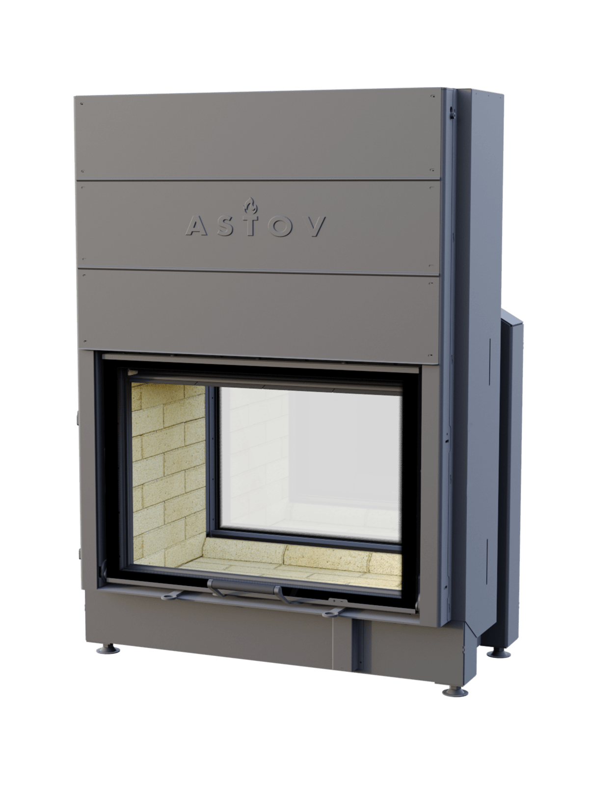 Две дверцы с прямым стеклом. Пространная, сквозная модель, великолепно вписывается в межкомнатные перегородки, для созерцания огня как из гостиной, так и из спальни или кабинета, служит отличной основой для создания центрального (островного) камина. Увеличенный обзор благодаря специальной рамке. Шелкография завершает обрамление очага, гармонируя с внутренним убранством топочной части. Усиленный воздушный поток на дожиг, предохраняет стеклокерамику от нагара. Обе застеклённые поверхности остаются неизменно чистыми, пока вы протапливаете. Плотное прижимание дверки в нижней точке закрывания и качественные регуляторы позволяют без напряжения управлять огненным процессом, от практически невидимого до бушующего. Ручка для открывания, бархатная на ощупь, не обжигает руки. Дверь поднимается легко и бесшумно, благодаря особенным, долговечным приспособлениям. Подъёмный механизм располагается с одной стороны. Мощность топки и необходимые габариты подходящего помещения