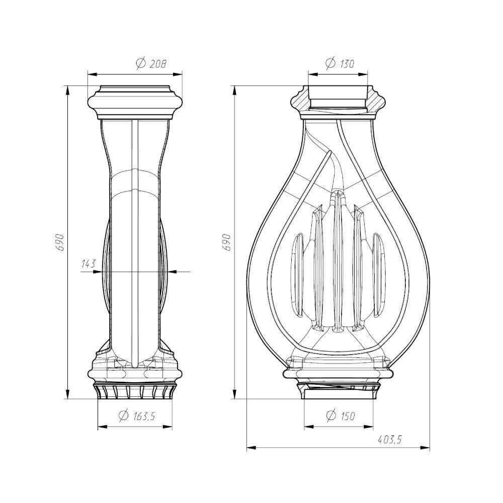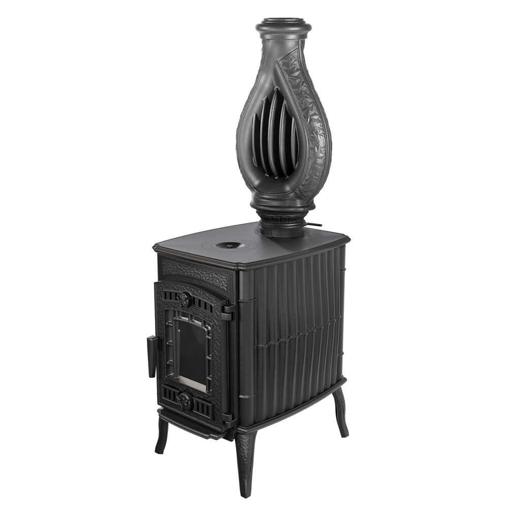 Конвектор «Лира» выполнен из жаропрочного чугуна ЧХ-1, обладающего рекордной среди металлов теплоемкостью - 540Дж/кг°C. Он долговечен, неприхотлив к топливу, подходит для любых печей с диаметром дымохода 130 и 150мм.