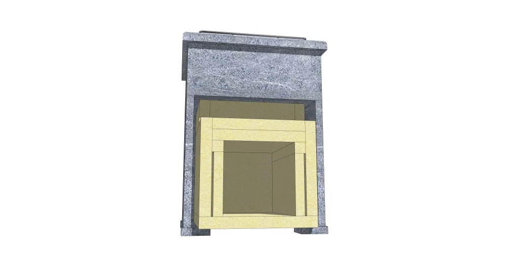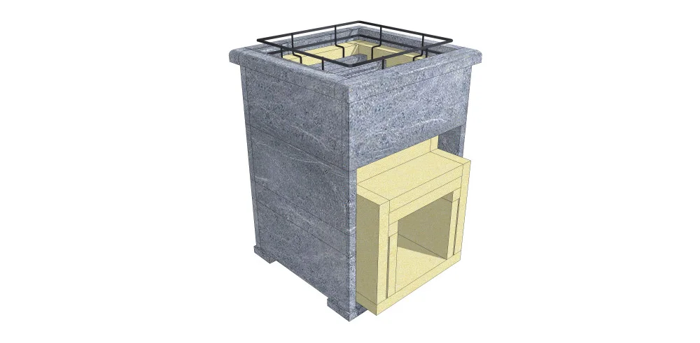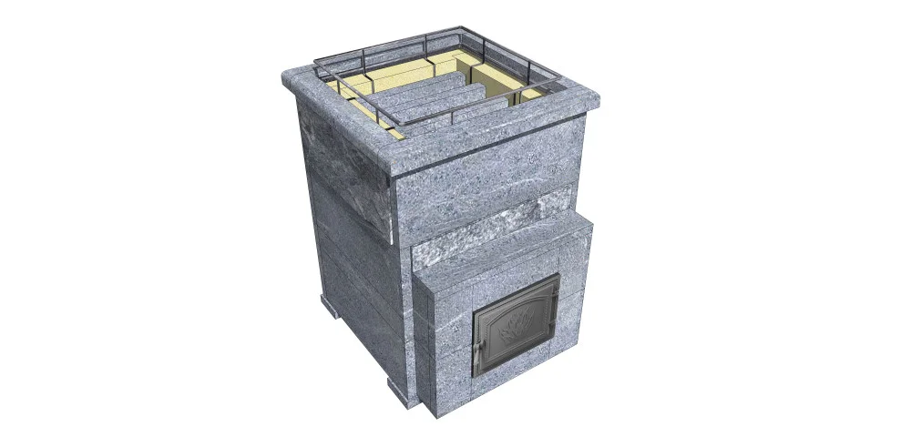 Внешний корпус из теплоаккумулирующего камня толщиной 40мм.