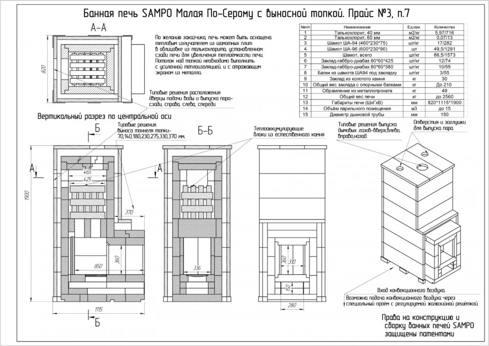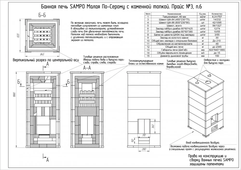 Для монтажа банных Печей SAMPO предоставляются подробные чертежи сборки.