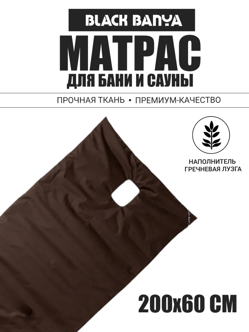 Водонепроницаемый матрас с гречкой достаточно большой – на нем комфортно размещается взрослый человек любого телосложения и комплекции. При этом он складной, благодаря чему немного места при хранении. Забудьте о твердых и неудобных деревянных лежаках, сенных одноразовых матрасах – закажите фирменный ортопедический матрас с лузгой гречихи от Black Banya!