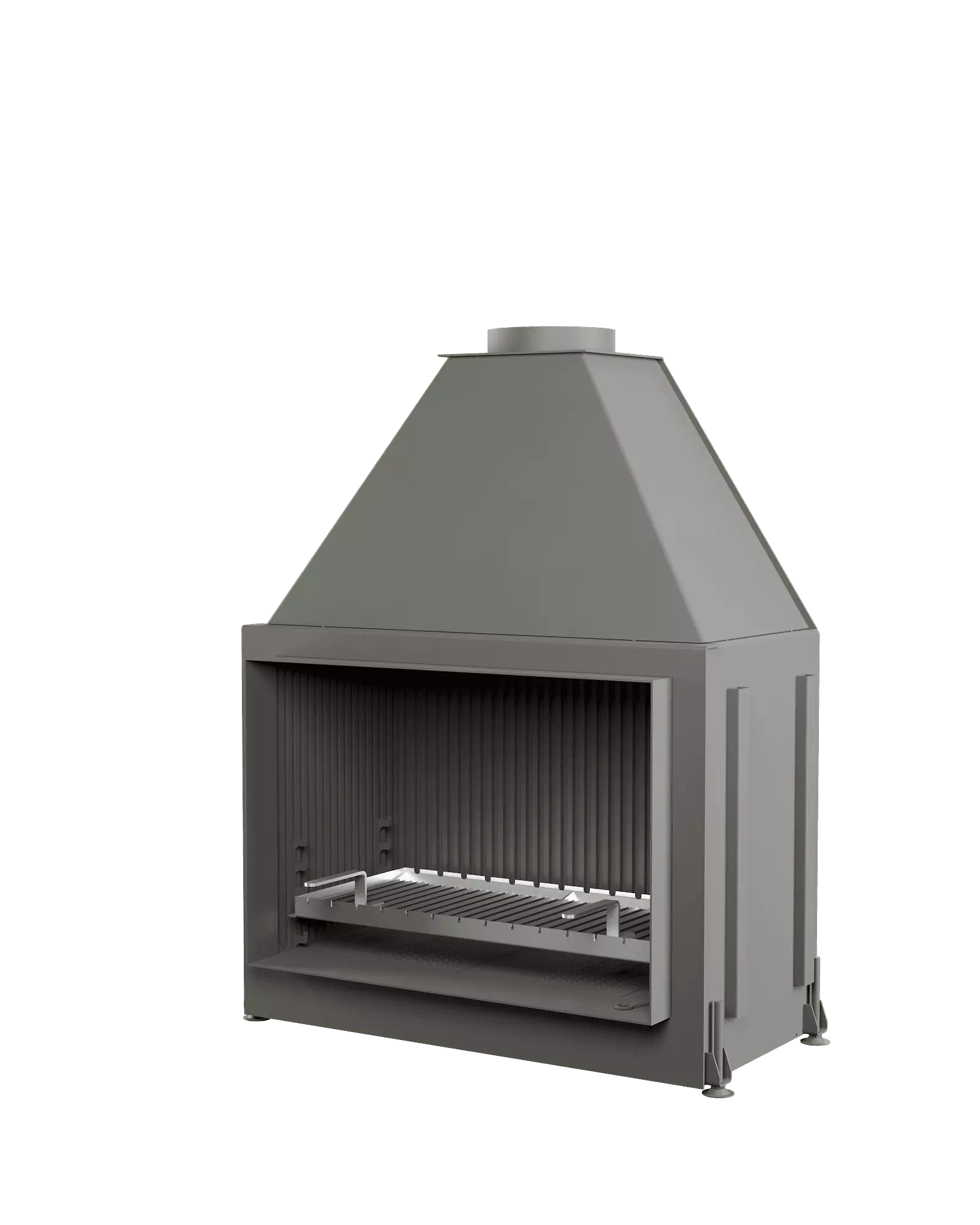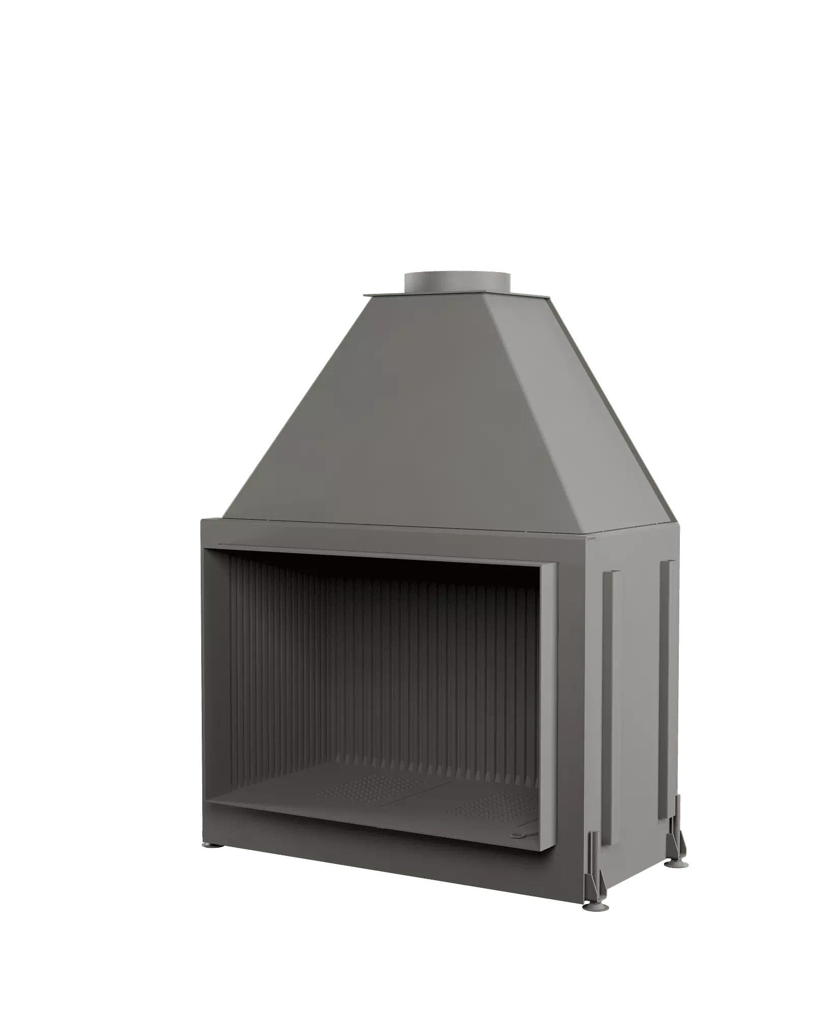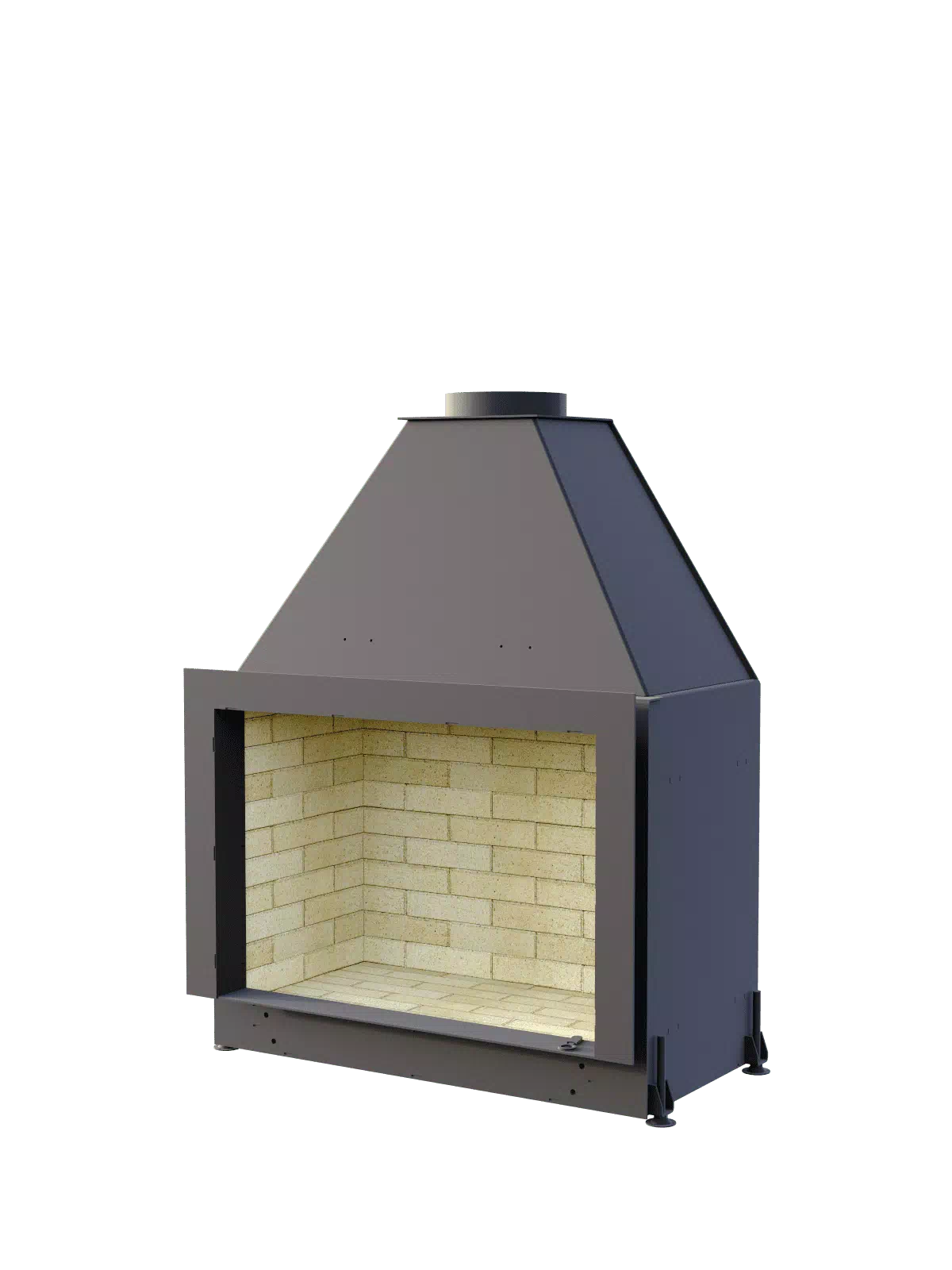 К внешнему, выполненному из котловой стали, приварены п-образные профили (рёбра жёсткости) таким способом, что в металле, во время разогрева, не возникает деформации (предварительно напряжённая конструкция). Это обеспечивает неизменность формы, эффективность теплопередачи и долговечность. Футеровка формирует структуру, несущую на себе всю термическую нагрузку. Шамот – стенки разогреваются продолжительно, температура повышается дольше, чем с металлическим содержимым. Превосходно для любителей долго пожечь. Панели 3Д – сбалансированный вариант, тепло распределяется равномерно, а внушительная масса поддерживает высокотемпературное горение. Бесколосниковая система улучшает сгорание и увеличивает КПД Мощность топки и необходимые габариты подходящего помещения.