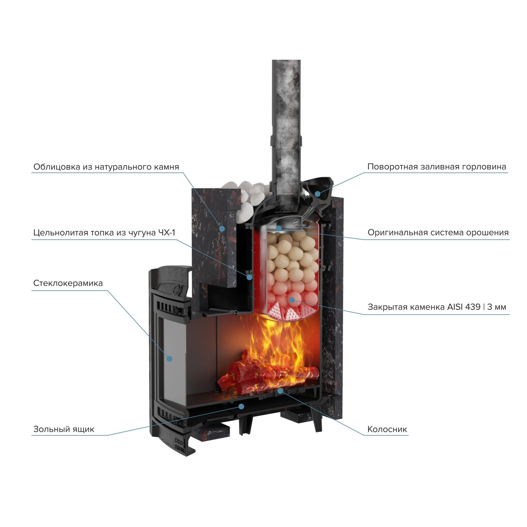 Внимание! стартовый и чугунный дымоход не входит в комплект печи.