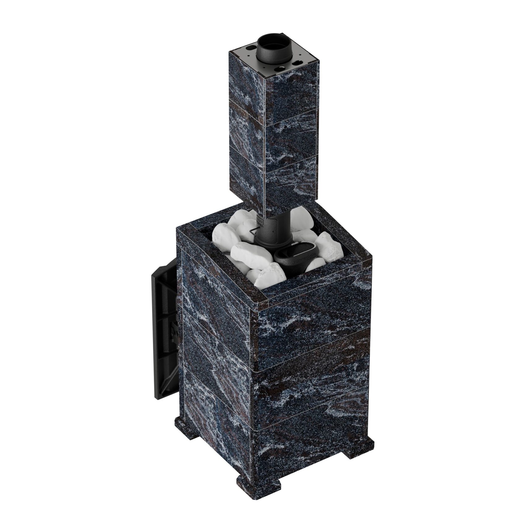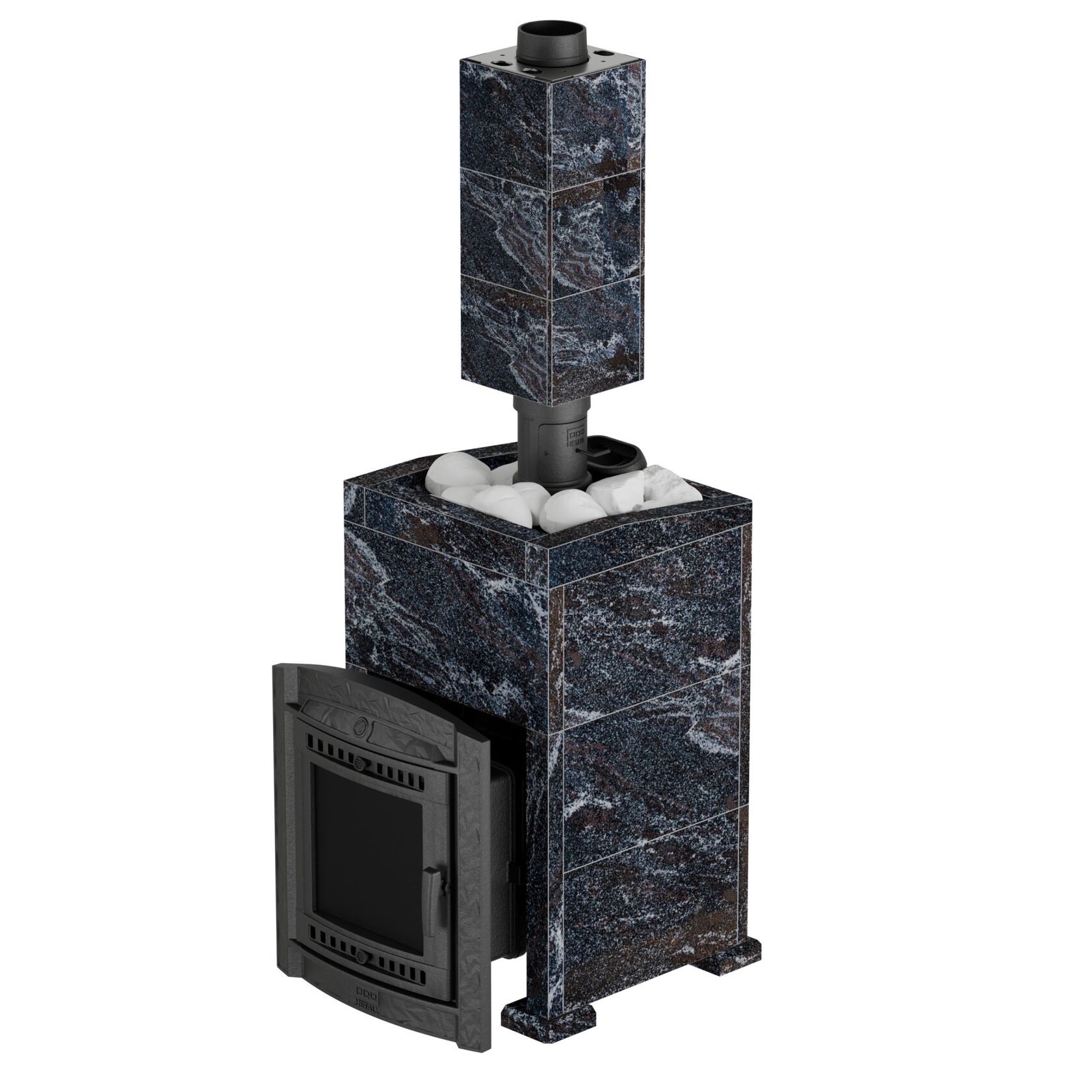 Комплектация - печь, облицовка банной печи, корзина облицовки к печи, облицовка чугунной трубы, крепление облицовки натрубной.