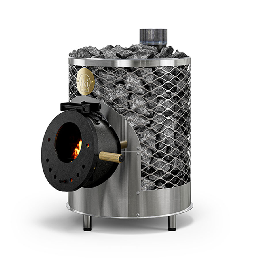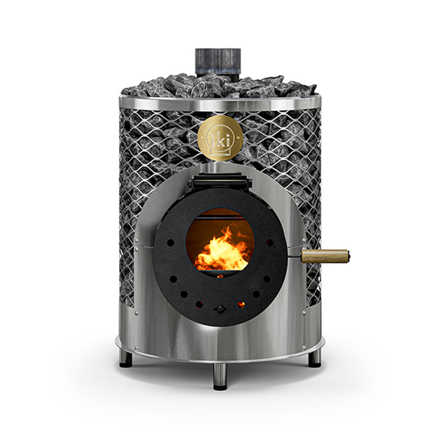 В 2025 году компания IKI обновила дизайн и комплектацию печи Mini. Теперь она поставляется со встроенными ножками, а также деревянной ручкой для удобства открывания топки. В остальном, это вся та же IKI Mini — мощная печь для небольшой бани. Цилиндрическая конструкция топки позволяет ей эффективно нагревать 120 кг камней. Для каменки возможно приобрести комплект из сетки и дымовой трубы Plus. Он поможет подключить каменку к дымоходу, а также увеличит доступный объем камней.