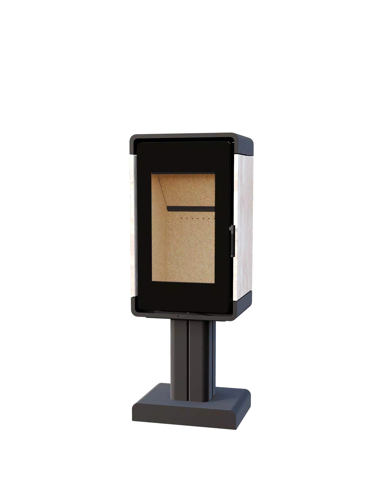 Печь-Камин Астов Куб (ПК 4581) с каменными панелями на ноге.