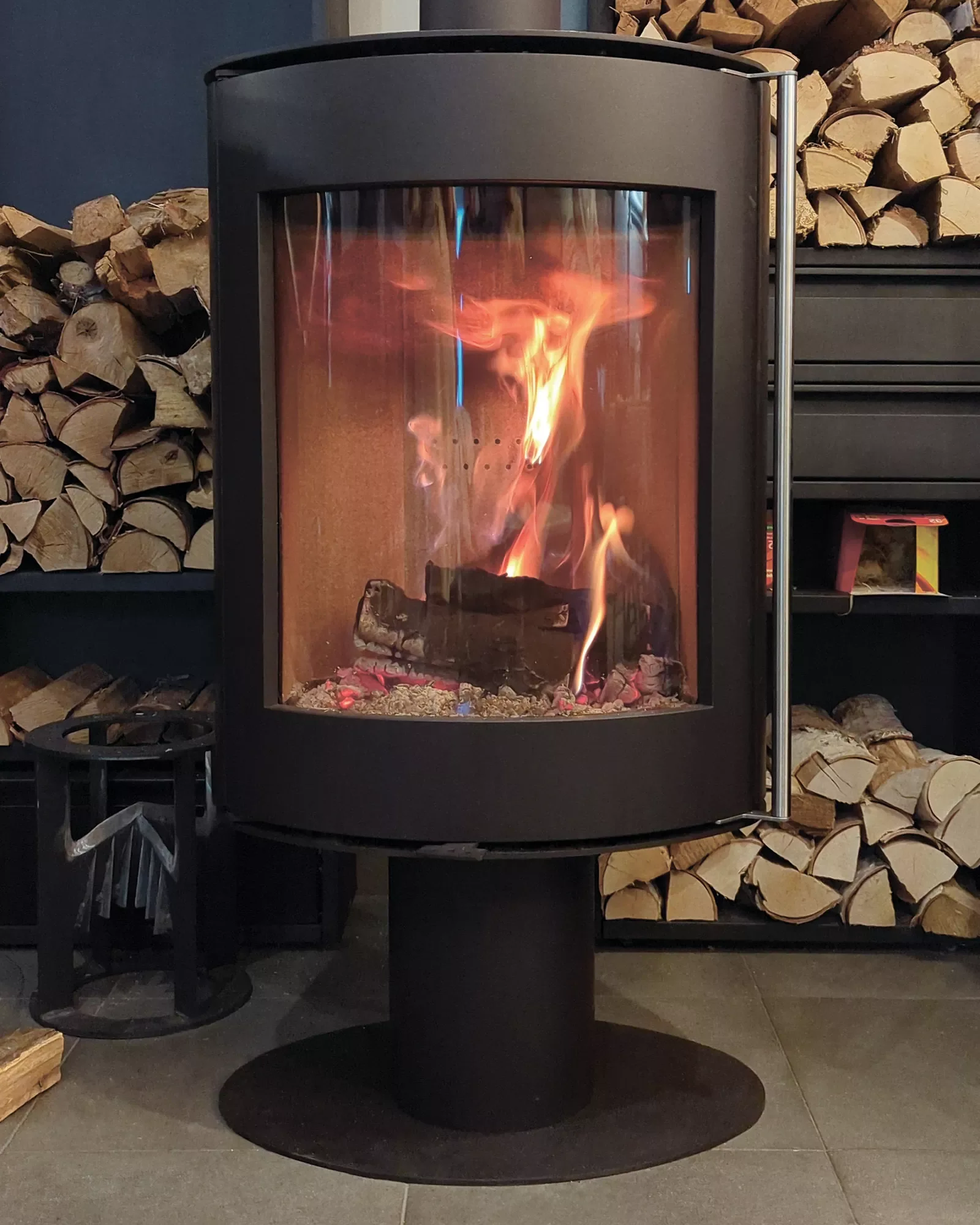 Овальная печь-камин с большим стеклом. Великолепный вид на огонь в сочетании с передовыми технологиями. <strong>Возможна установка поворотного механизма (+30 000 руб.)</strong>