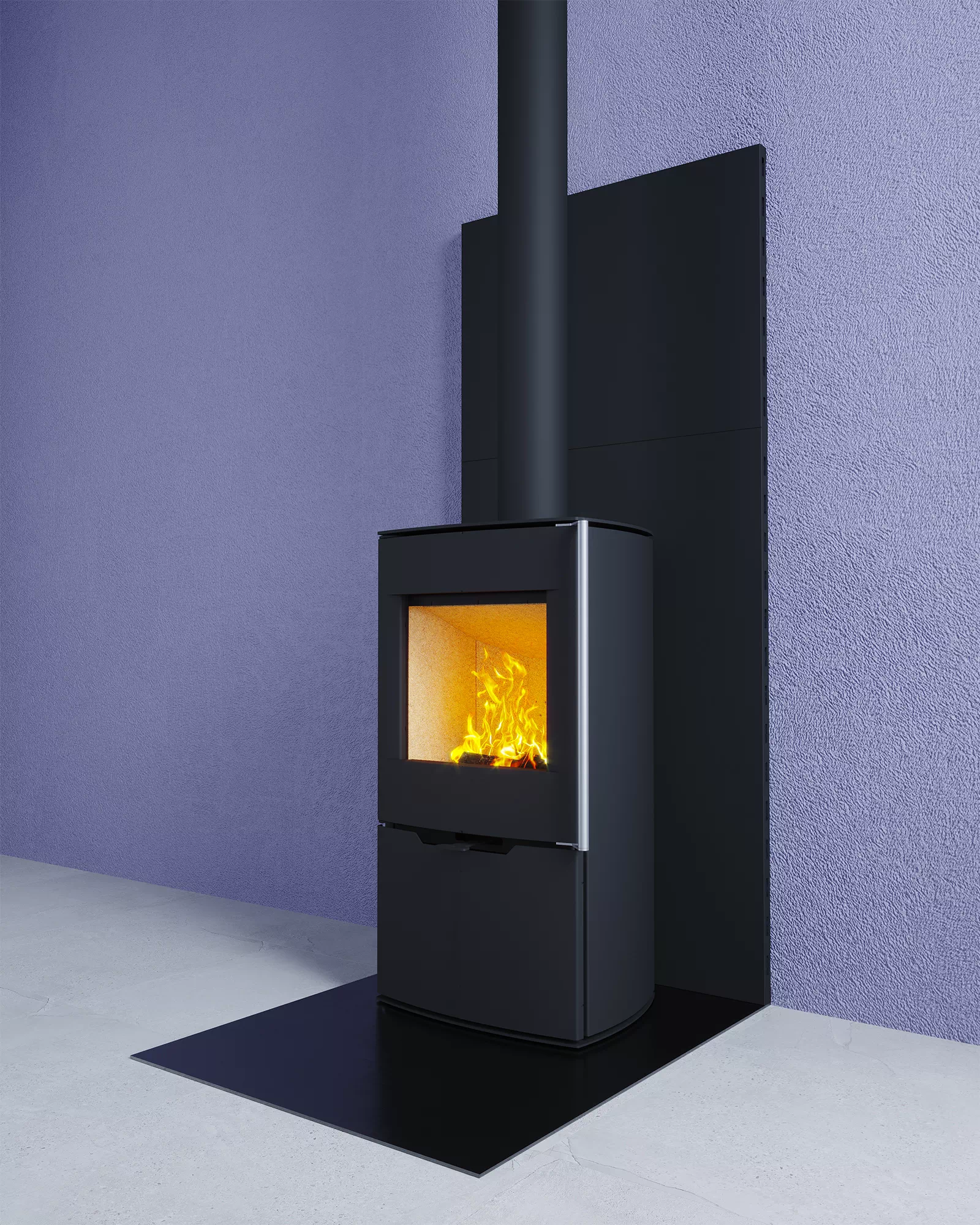 Печь-Камин F 341 с максимальной панорамой пламени создает прекрасный вид на огонь из любой точки помещения.