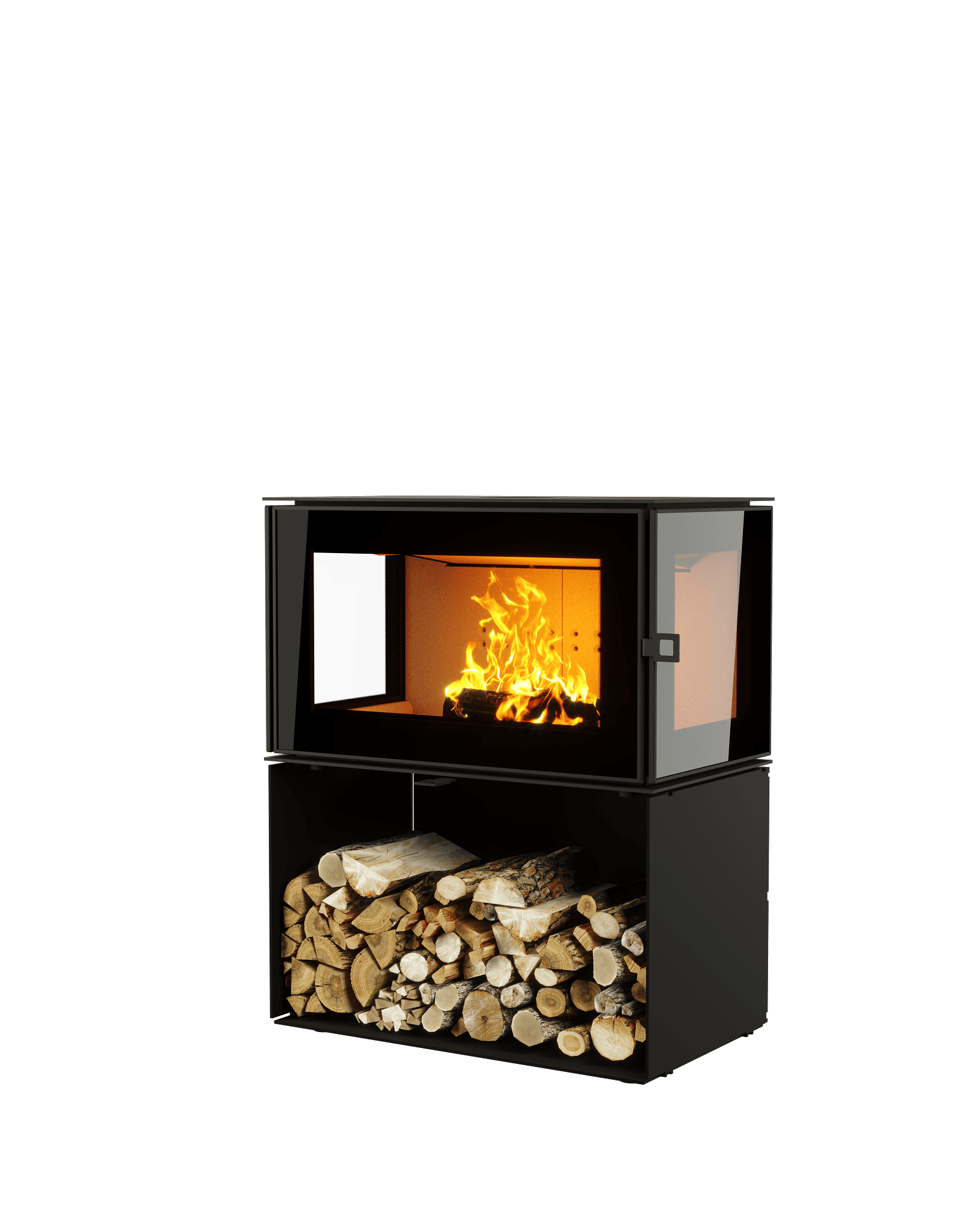 Печь-камин КУБ 3С 800 сочетает в себе эстетику, функциональность и экологичность. Её минималистичный корпус из стали, окрашенной в черный цвет, придает ей элегантный и современный вид. Боковые стенки печи-камина КУБ 3С 800 имеют двойное остекление и обеспечивают панорамный обзор на пламя.