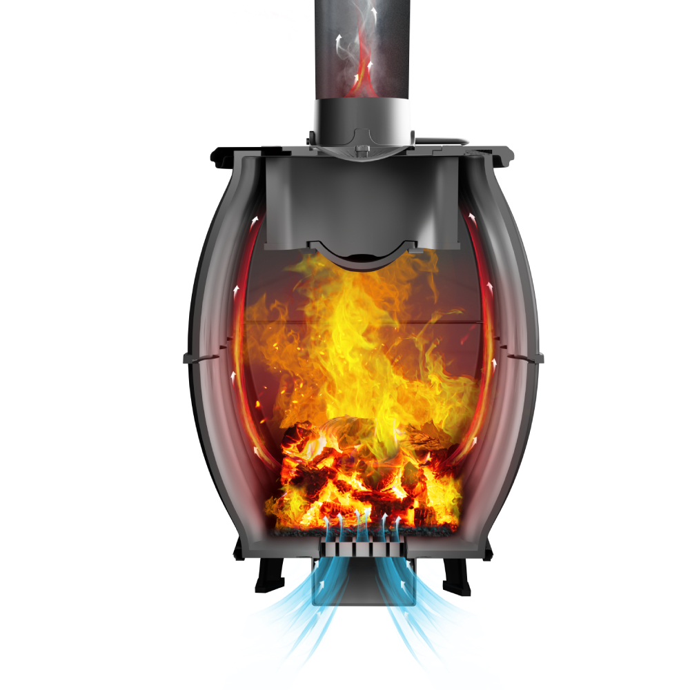 Многофункциональная модель, сочетающая в себе достоинства печи и камина: быстрый нагрев помещения, высокая теплоотдача, небольшой расход дров, долгий режим в работе тления и варочная панель в комплекте.