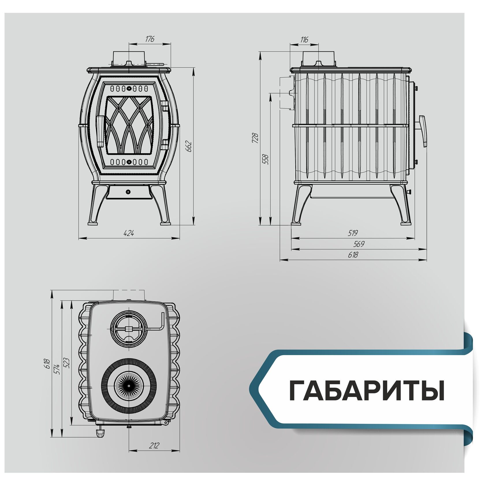 | Размер печи (ВхДхШ) | 728х569х424 мм |