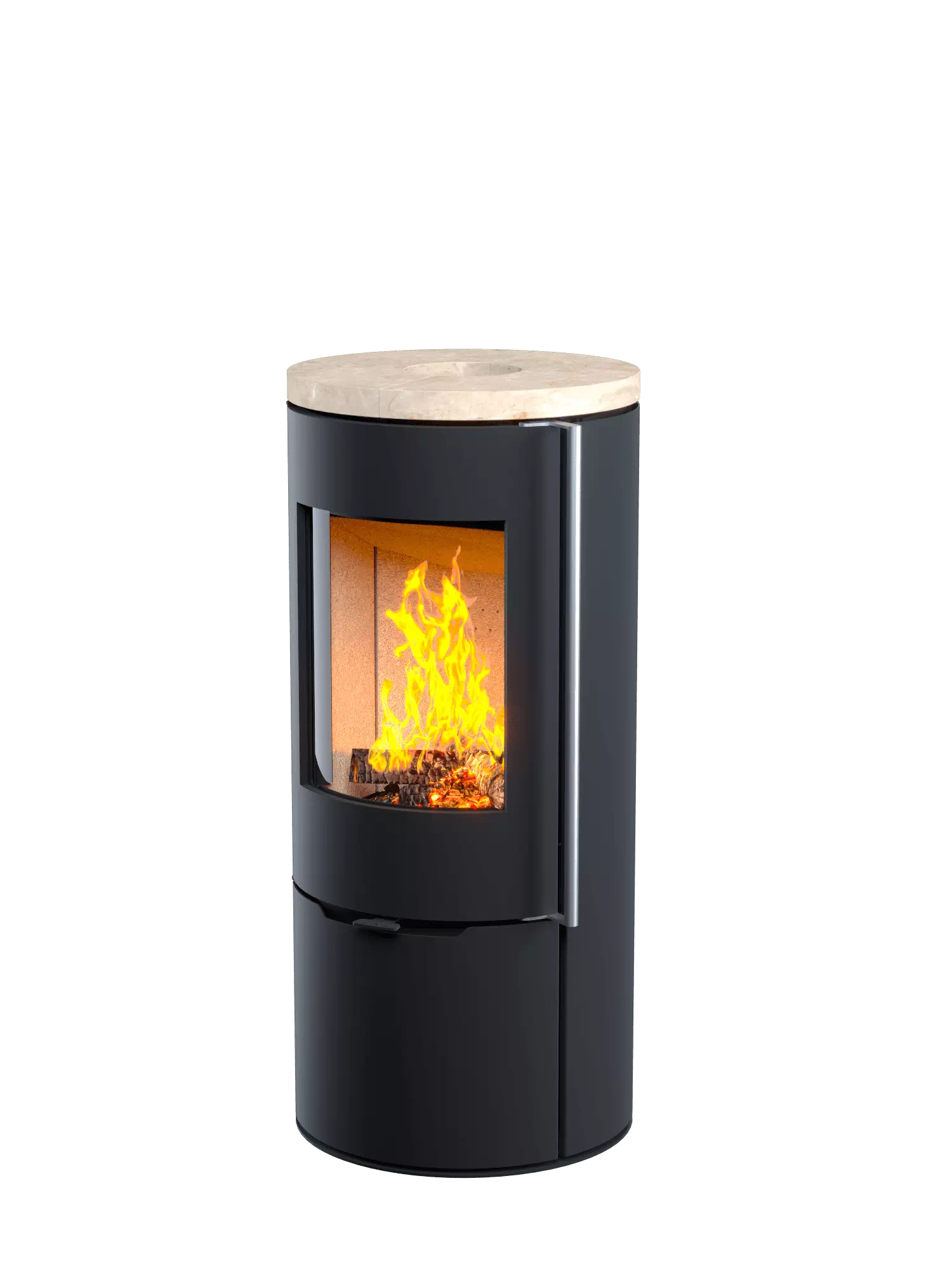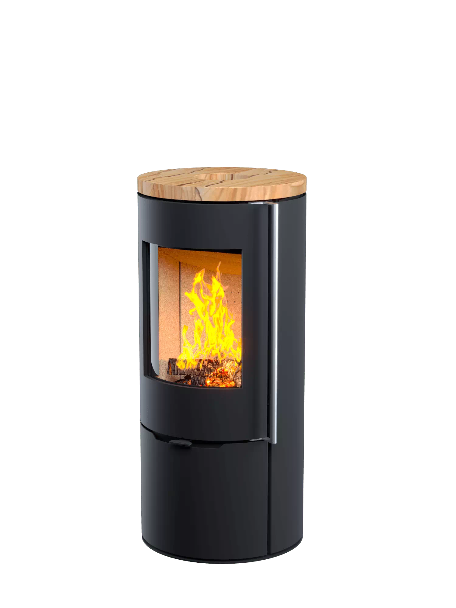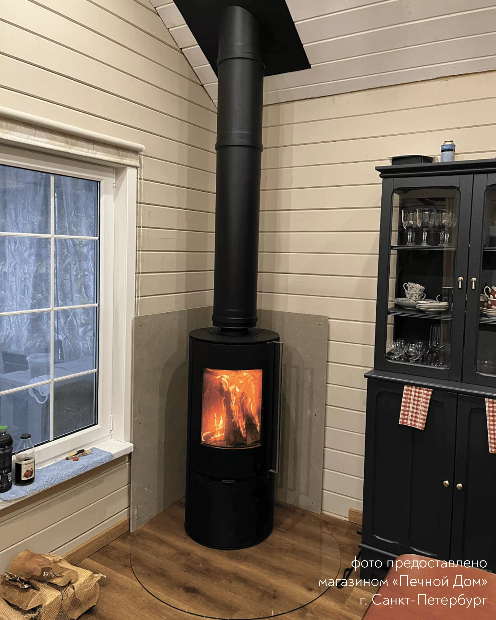Печь-Камин R1.0 с круглой задней стенкой c максимальной панорамой пламени создает прекрасный вид на огонь из любой точки помещения. Возможна установка поворотного механизма (+30 000 руб.)
