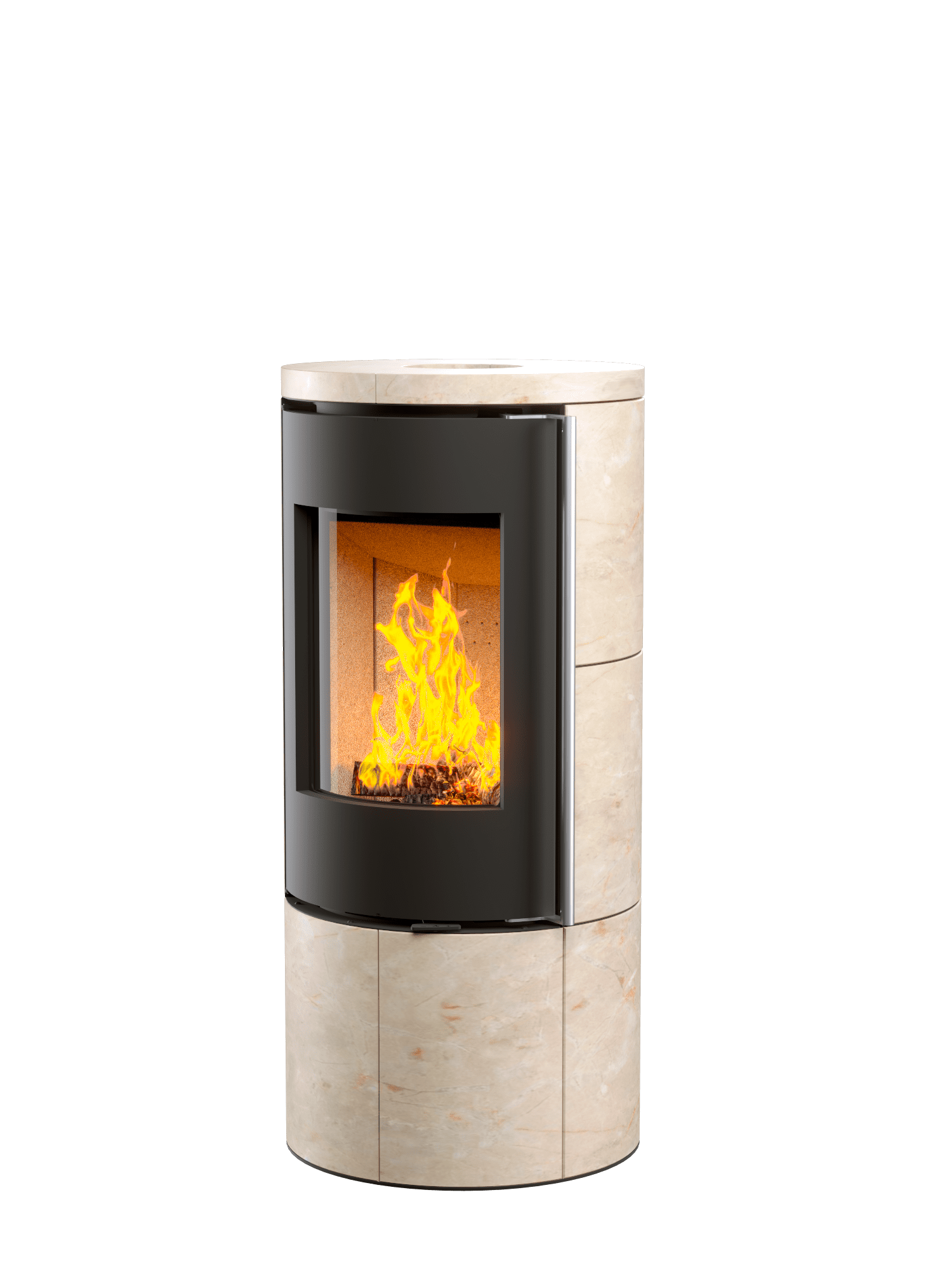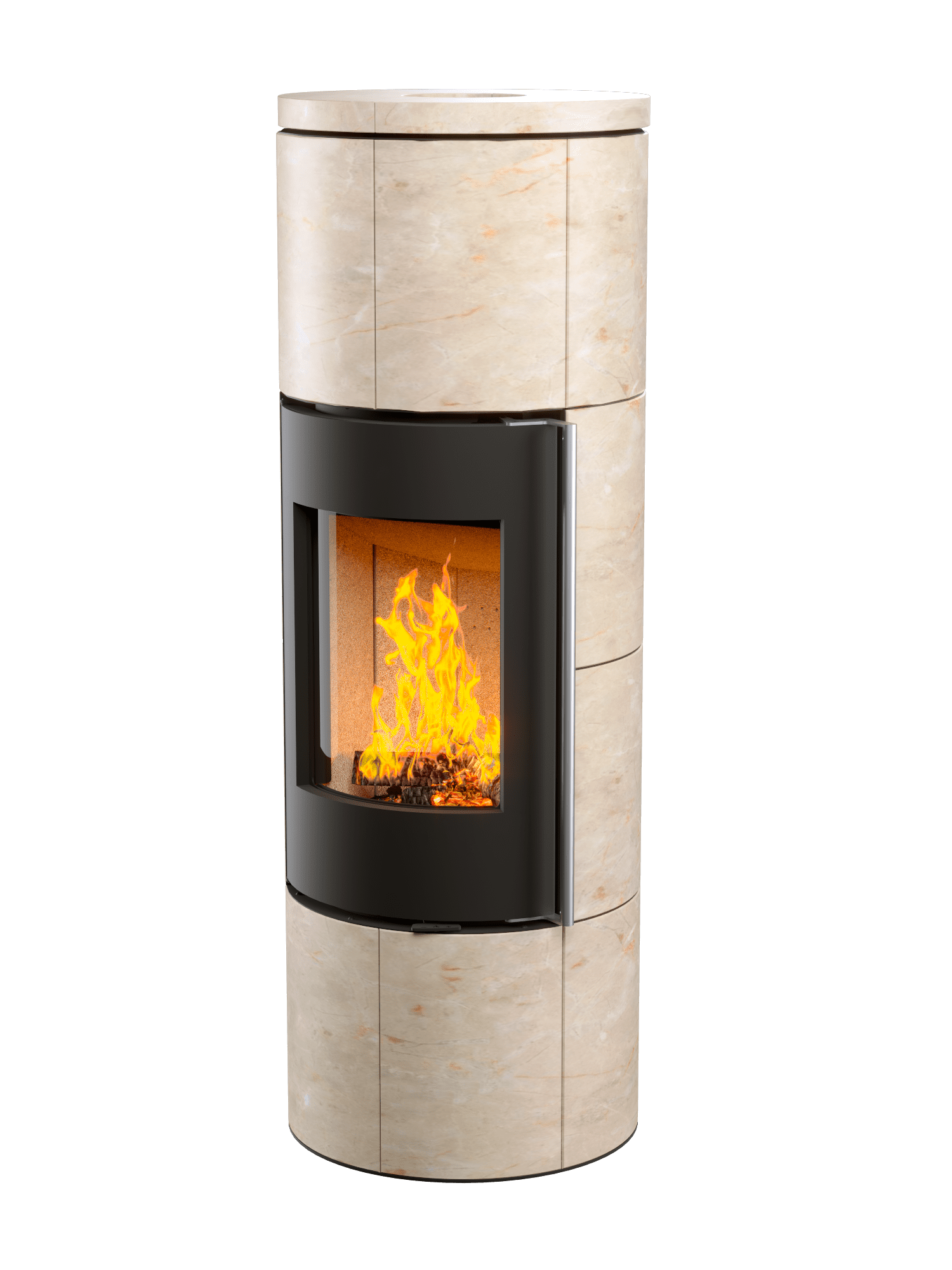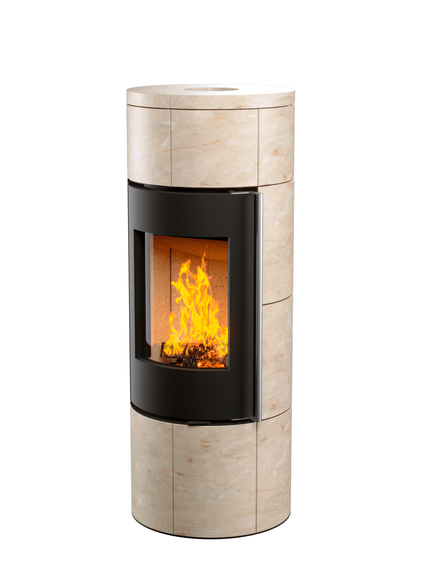 Печь-Камин R1.0 K c каменными панелями и круглой задней стенкой c максимальной панорамой пламени создает прекрасный вид на огонь из любой точки помещения. Возможна установка поворотного механизма (+30 000 руб.) Весенняя акция: при заказе данного товара дополннительная скидка 8%.