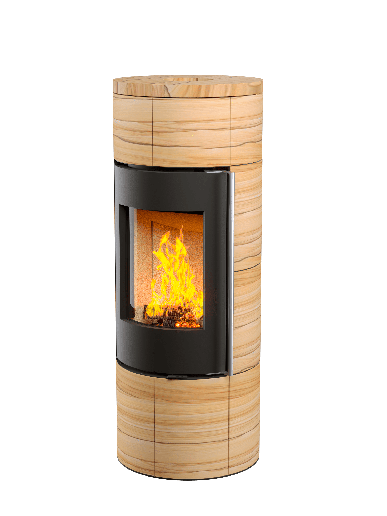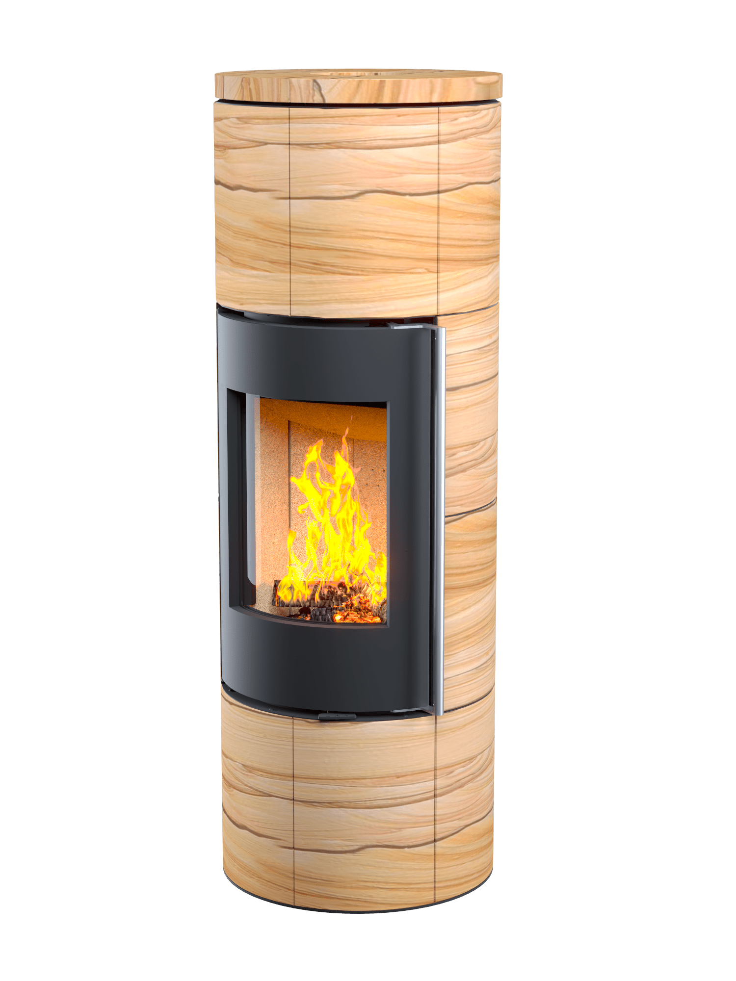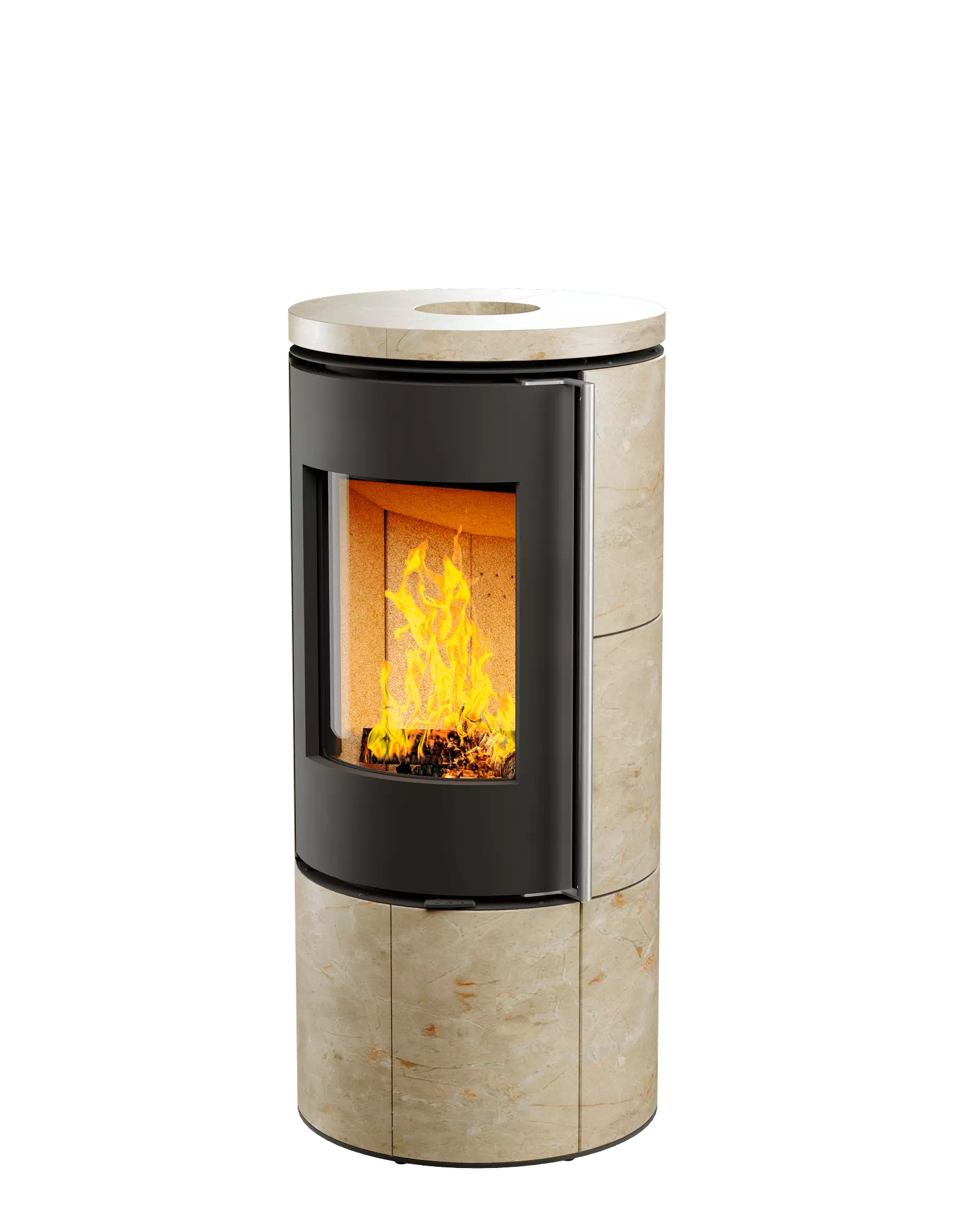 Печь-Камин R1.0 K c каменными панелями и круглой задней стенкой c максимальной панорамой пламени создает прекрасный вид на огонь из любой точки помещения. Возможна установка поворотного механизма (+30 000 руб.) Весенняя акция: при заказе данного товара дополннительная скидка 8%.