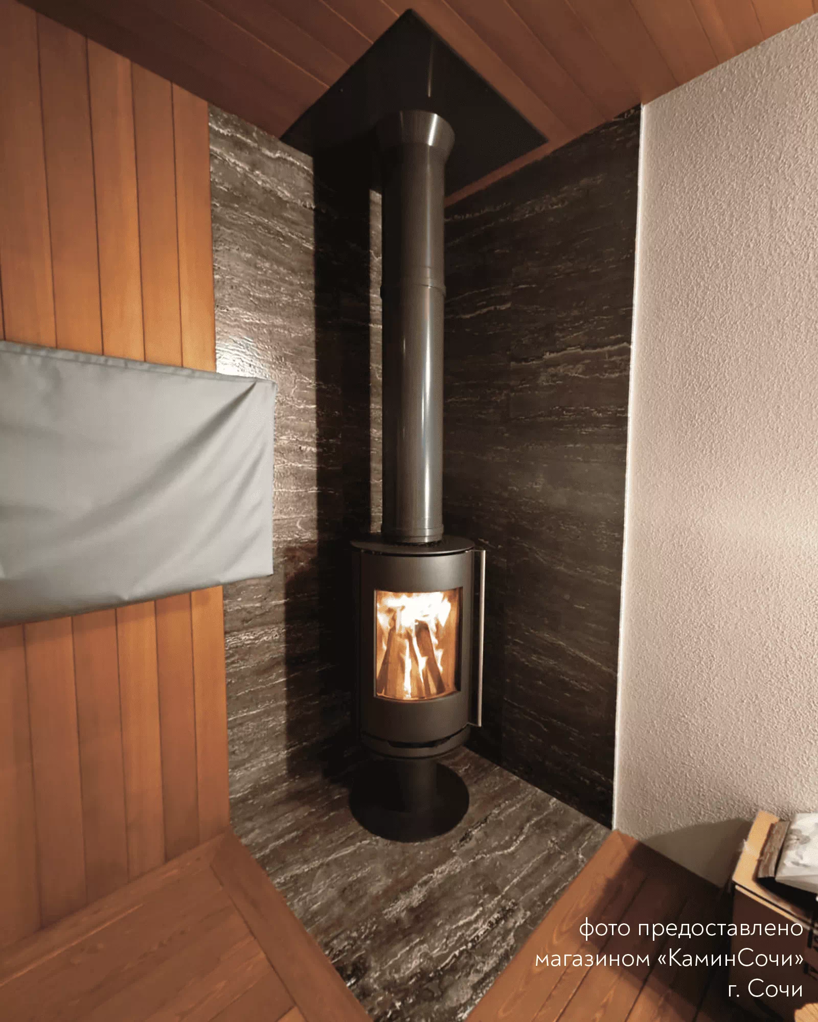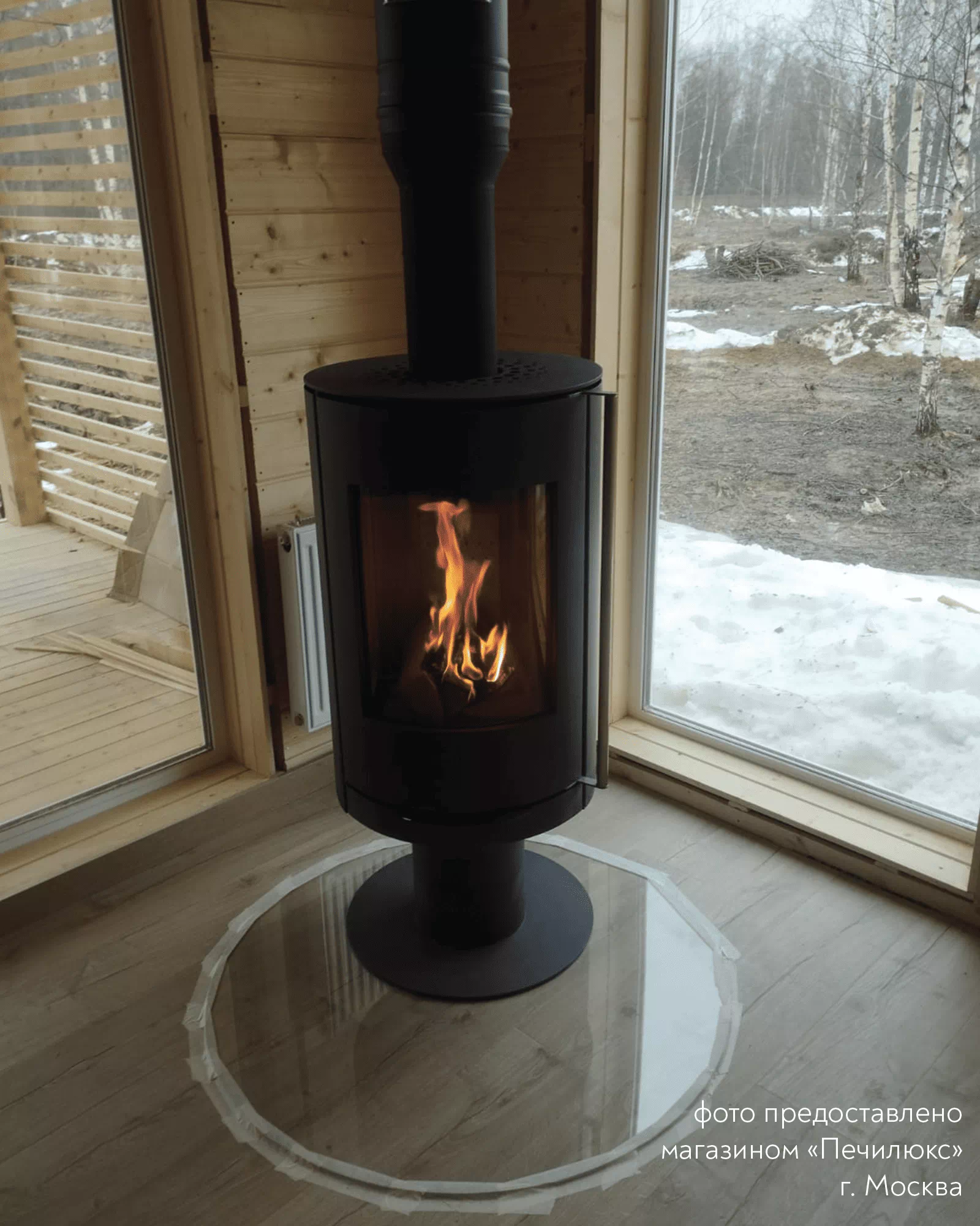 Печь-Камин R1.0 N с круглой задней стенкой c максимальной панорамой пламени создает прекрасный вид на огонь из любой точки помещения. Возможна установка поворотного механизма (+30 000 руб.)