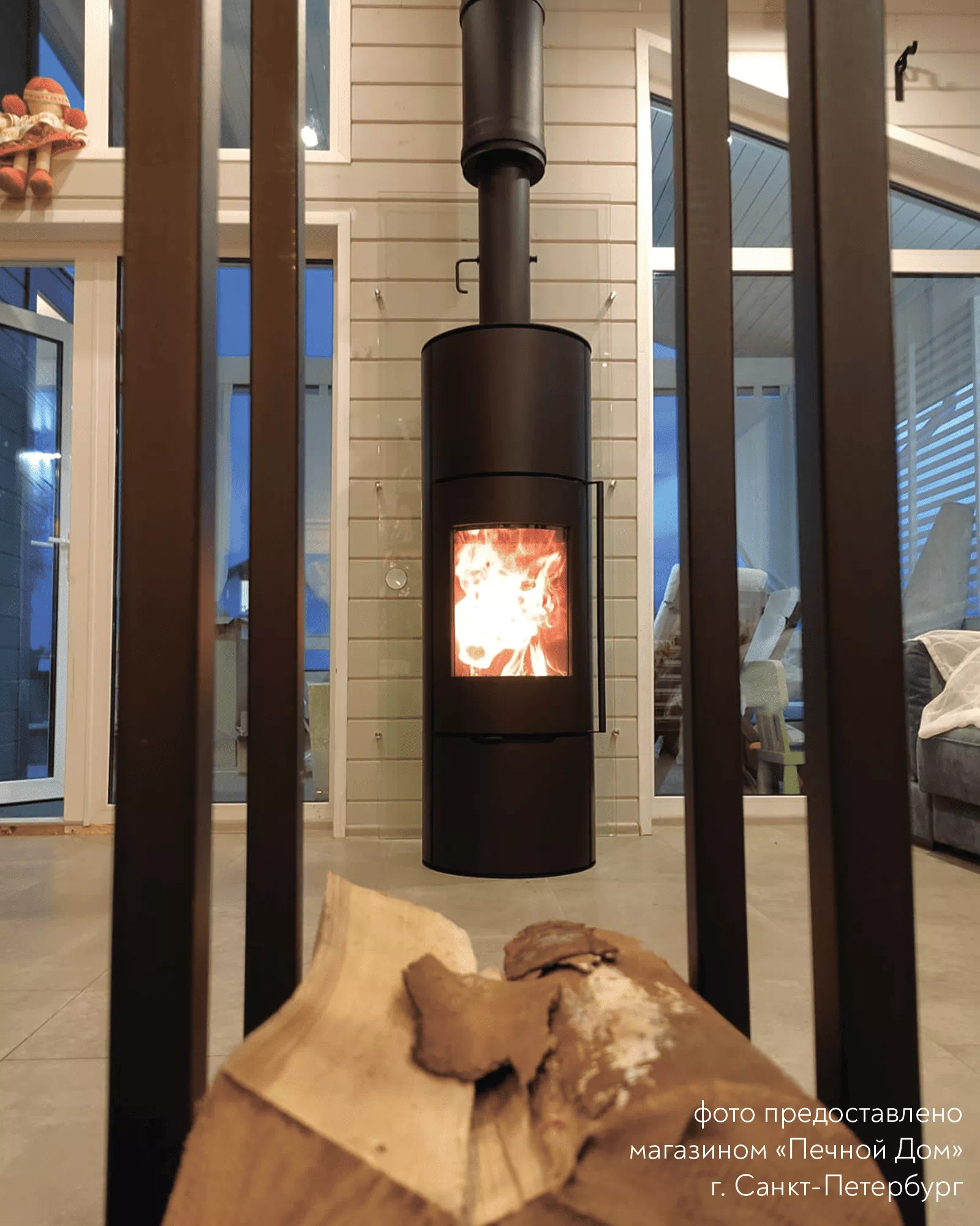 Печь-Камин R1 XL с круглой задней стенкой и высотой 1500 мм c максимальной панорамой пламени создает прекрасный вид на огонь из любой точки помещения. Возможна установка поворотного механизма (+30 000 руб.)
