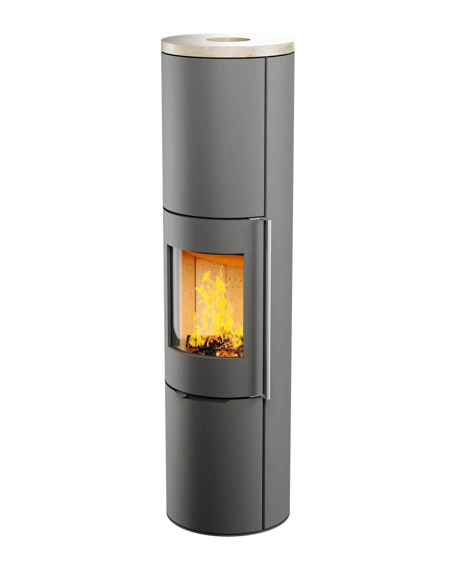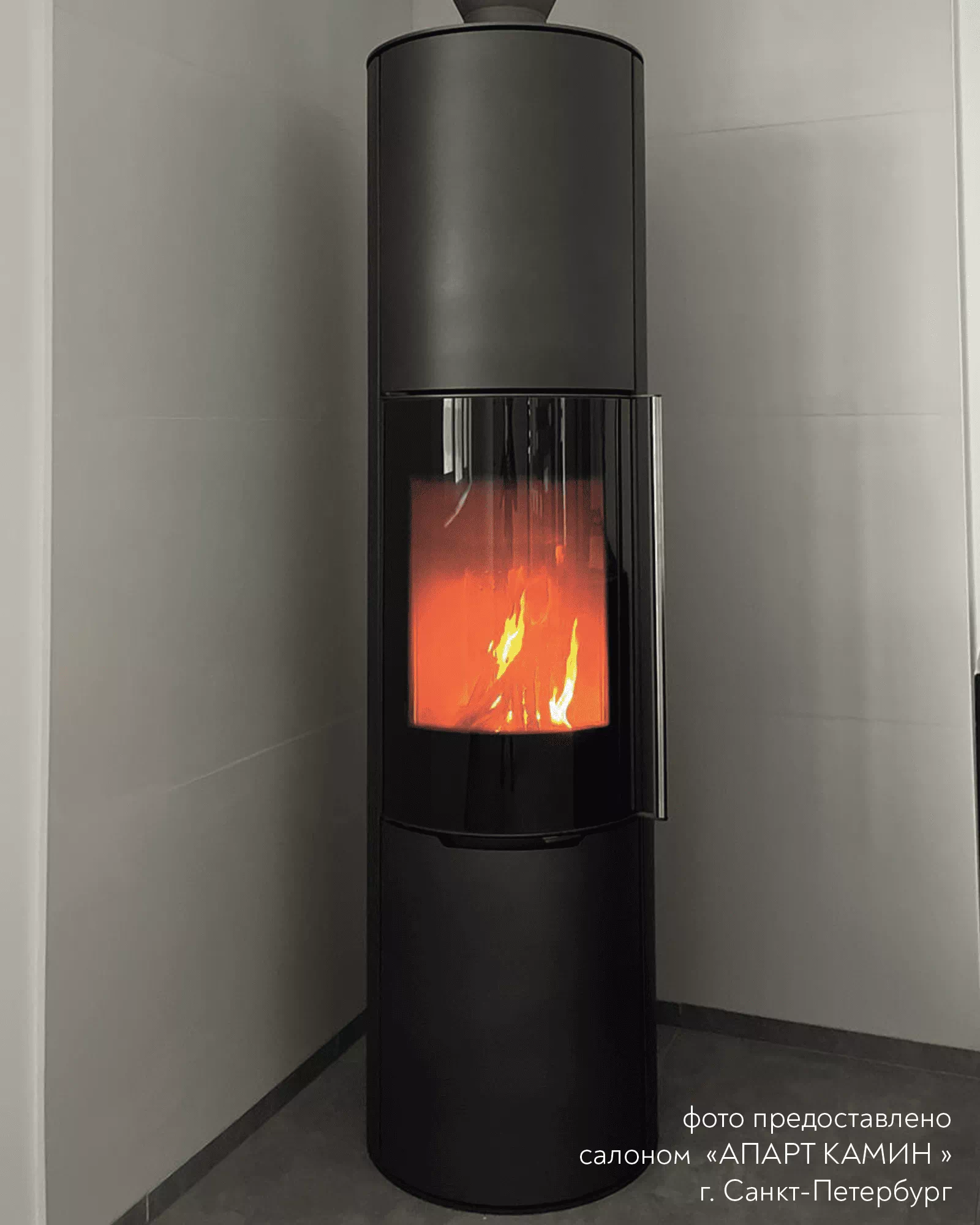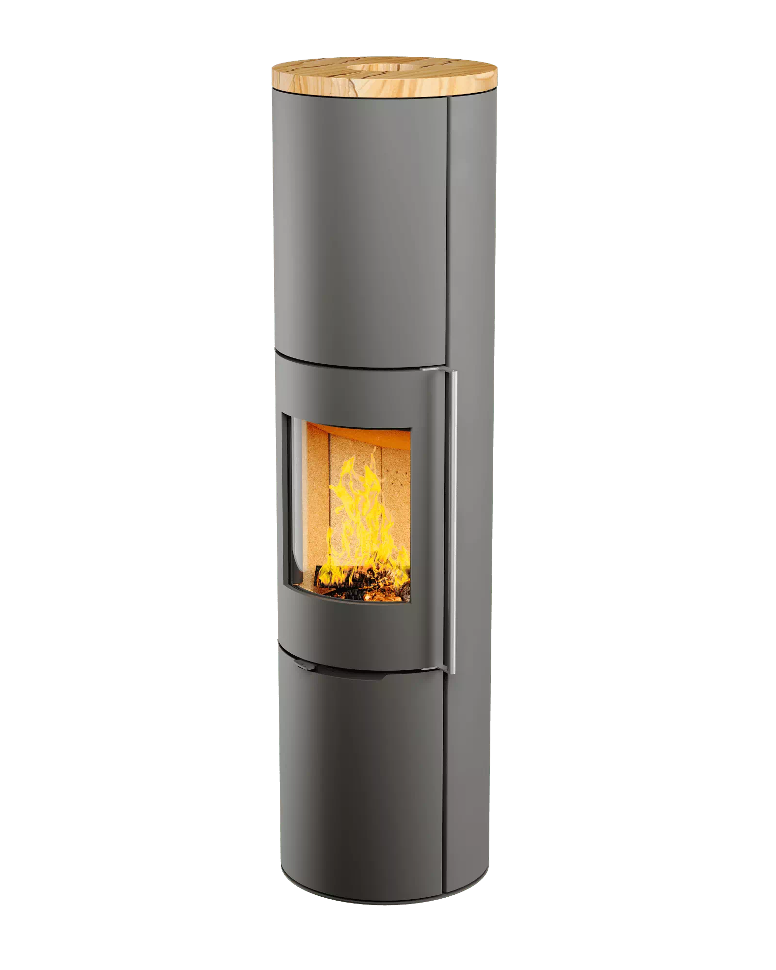 Печь-Камин R1.0 XXXL с круглой задней стенкой и высотой 1895 мм c максимальной панорамой пламени создает прекрасный вид на огонь из любой точки помещения. Возможна установка поворотного механизма (+30 000 руб.)