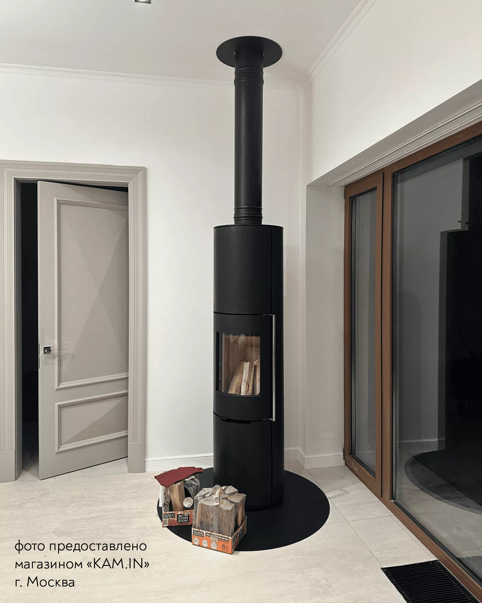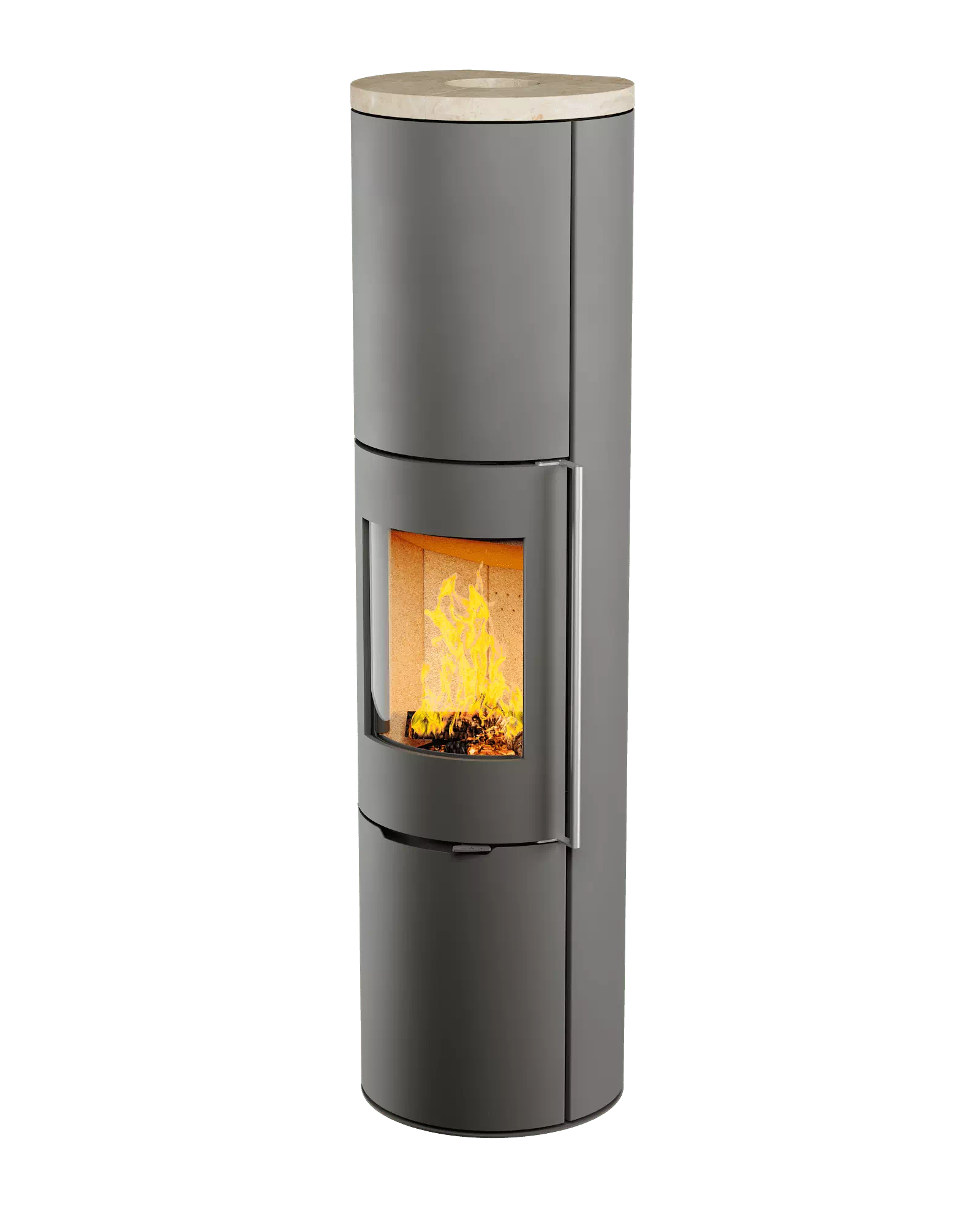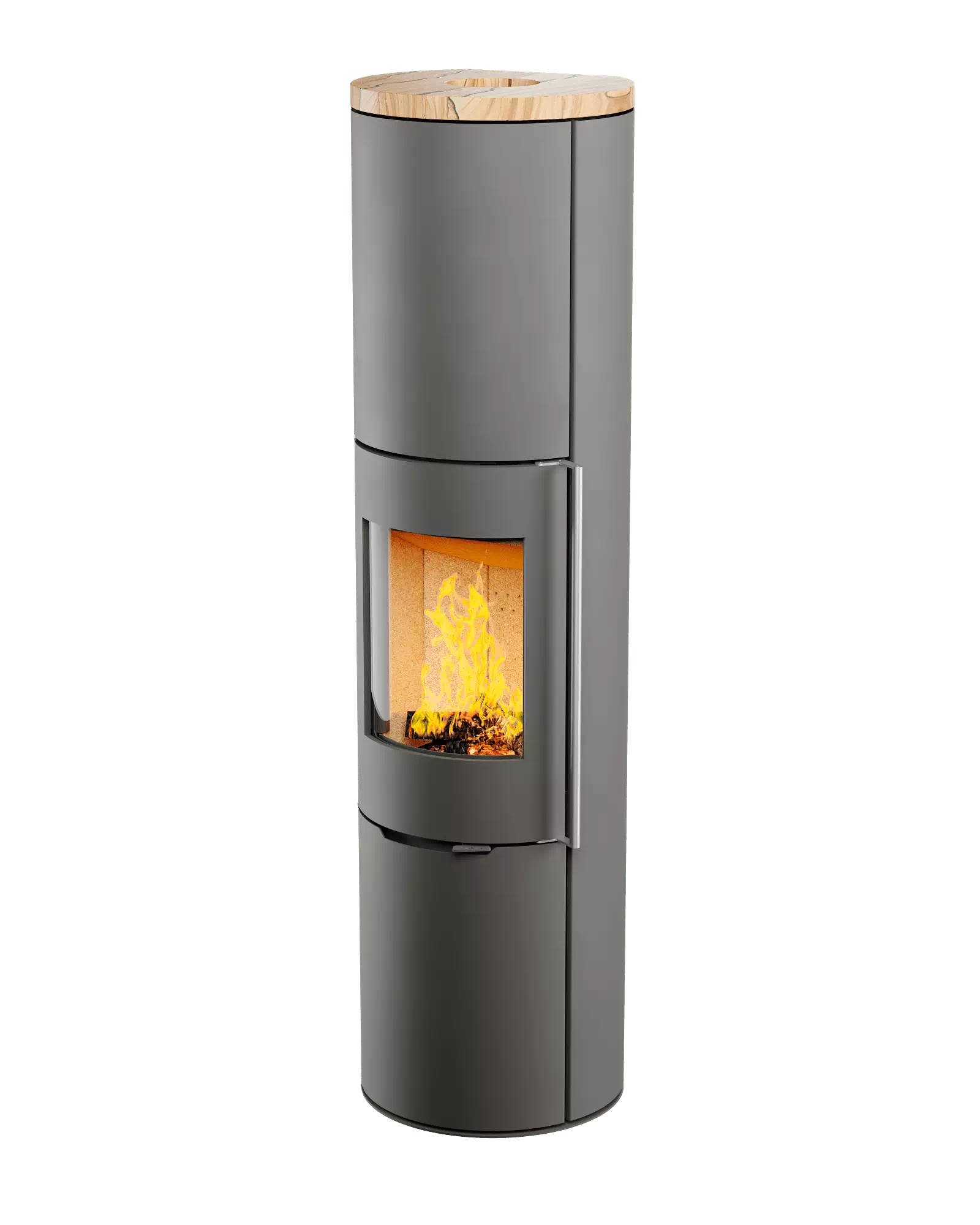 Печь-Камин R1.0 XXXL с круглой задней стенкой и высотой 1895 мм c максимальной панорамой пламени создает прекрасный вид на огонь из любой точки помещения. Возможна установка поворотного механизма (+30 000 руб.)