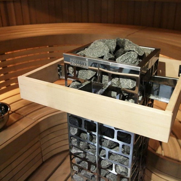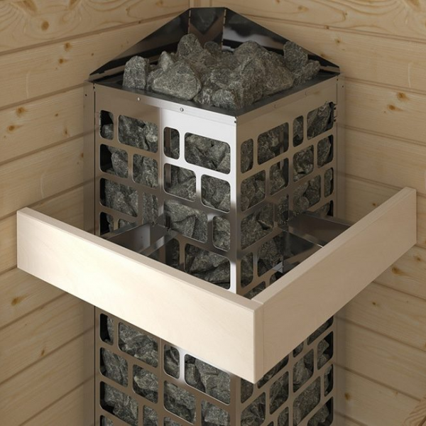 Электрокаменка Cubos CUB3-45NB-P от компании SAWO станет настоящим сердцем для вашей домашней сауны, или небольшой коммерческой парной объёмом 3-6 метров кубических. Конструкция каменки предполагает напольную установку и большую вместимость камней до 75 кг. Корпус печи имеет нетипичную форму вертикального параллелипипеда с квадратным поперечным сечением. Нагревательные элементы находятся в центре электрокаменки и по краям обкладываются камнем. Готовая к эксплуатации печь напоминает каменную башню и позволяет поддавать воду во время парения не только сверху каменки, но и по всей поверхности корпуса. Это особенно сильно порадует любителей влажной русской бани. С каменкой Cubos CUB3-45NB-P добиться большого количества лёгкого мелкодисперсного пара можно в самые короткие сроки. Ценителям традиционной сухой финской сауны придётся по душе быстрый прогрев парного помещения и равномерное распределение тепла. Для изготовления печи компания SAWO использует высококачественную нержавеющую сталь. При условии постоянного воздействия агрессивной внешней среды материал остаётся устойчив к коррозии, обеспечивая длительный срок эксплуатации. Подключение производится к сетям с напряжением 380 В и 220 В. Управление данной моделью производится с помощью удобной встроенной панели управления с интуитивно понятным интерфейсом. Она позволяет запрограммировать режим работы электрокаменки заранее, а также вносить необходимые корректировки непосредственно во время процедуры парения. Sawo Cubos - линейка печей с необычным дизайном. Внешне электрокаменки напоминают каменную башню. Нагревательные ТЭНы находятся по центру. Снаружи каркас печи выполнен в виде сетки, которая заполняется большим количеством камней для сауны. Квадратное поперечное сечение печи делает ее универсальной для размещения в парной. Одну и ту же печь можно установить и в углу, и у стены и по центру парилку. Среди каменок Cubos подходящую модель найдут и обладатели собственных домашних саун, и владельцы коммерческих парных. В серии представлены электрокаменки с мощностью от 4,5 до 9 Кв. Наименее мощные модели рассчитаны на обогрев помещений объёмом 3-6 кубических метра. Модели максимальной мощности идеально подходят для парных объёмом до 14 кубических метров. Максимальная вместимость камней составляет 75 кг. Конфигурация печи позволяет использовать Sawo Cubos в саунах с многоярусным размещением пологов. При этом вы можете быть уверены в равномерном прогреве каждого яруса. Если вы хотите купить универсальную электрокаменку, то Cubos - один из лучших вариантов. Подливая на камни воду можно добиться любого уровня влажности, а благодаря пульту управления заранее или в процессе парения установить необходимый температурный режим.