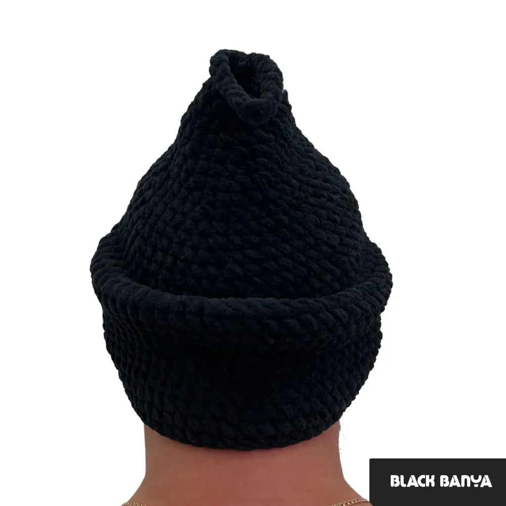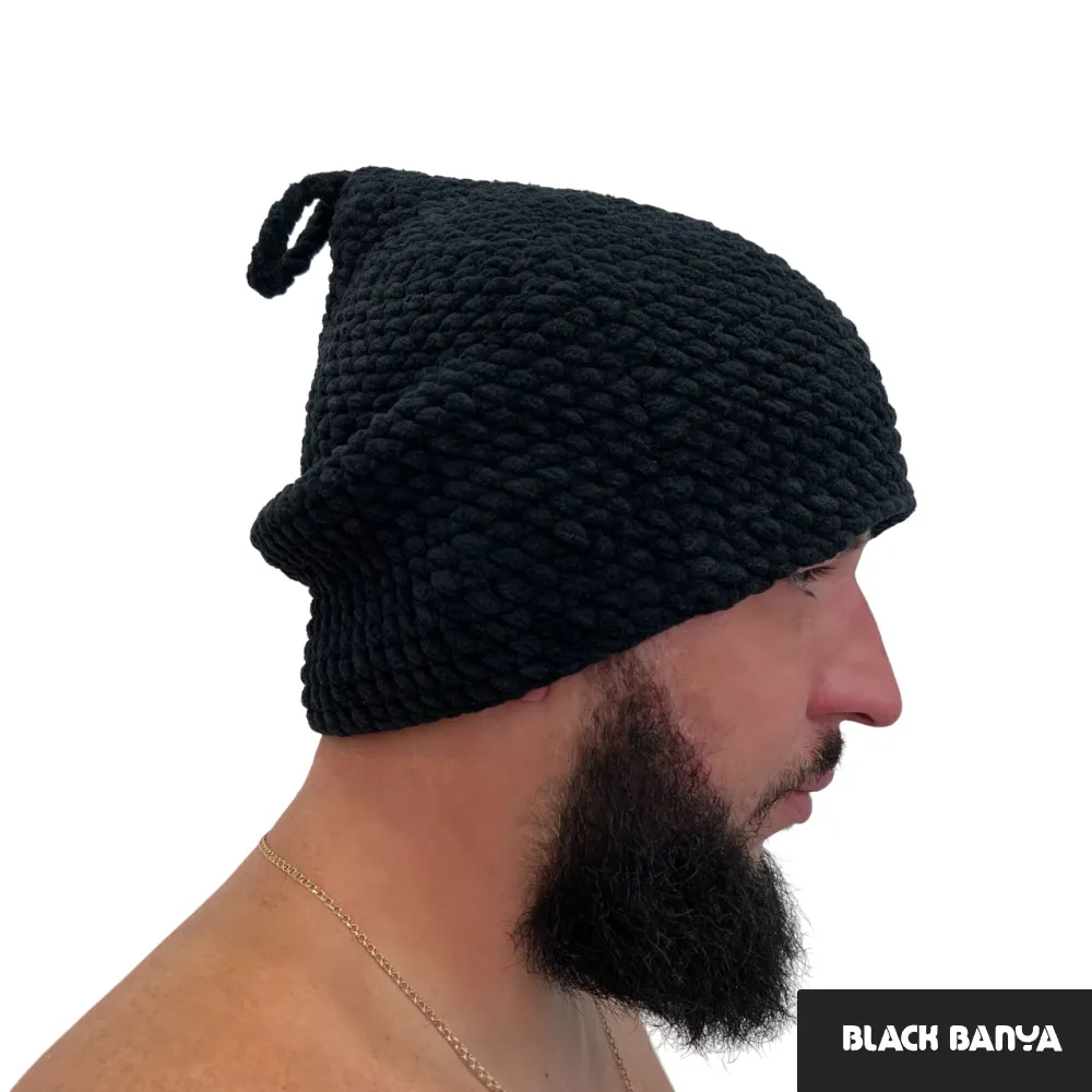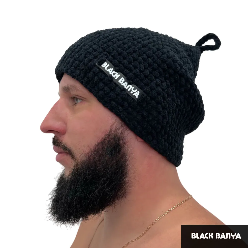Вязаная шапка ручной работы Black Banya для бани и сауны Premium надежно защищает голову от перегрева в парной.