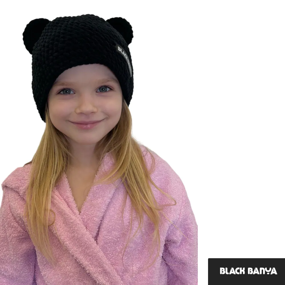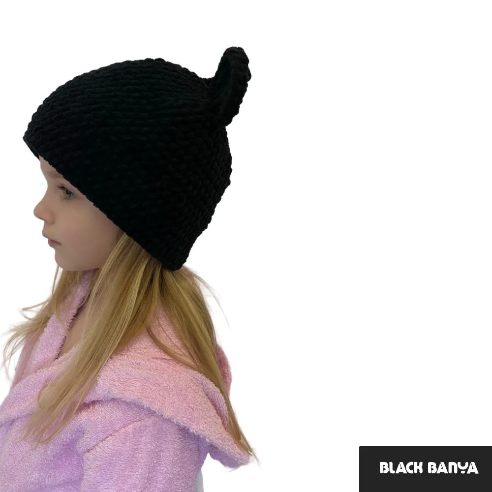 Шапка вязаная для бани и сауны ручной работы с ушками детская
