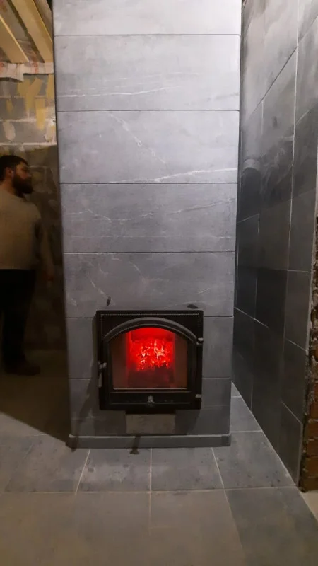 Топка из шамотных блоков толщиной 90 и 75мм.