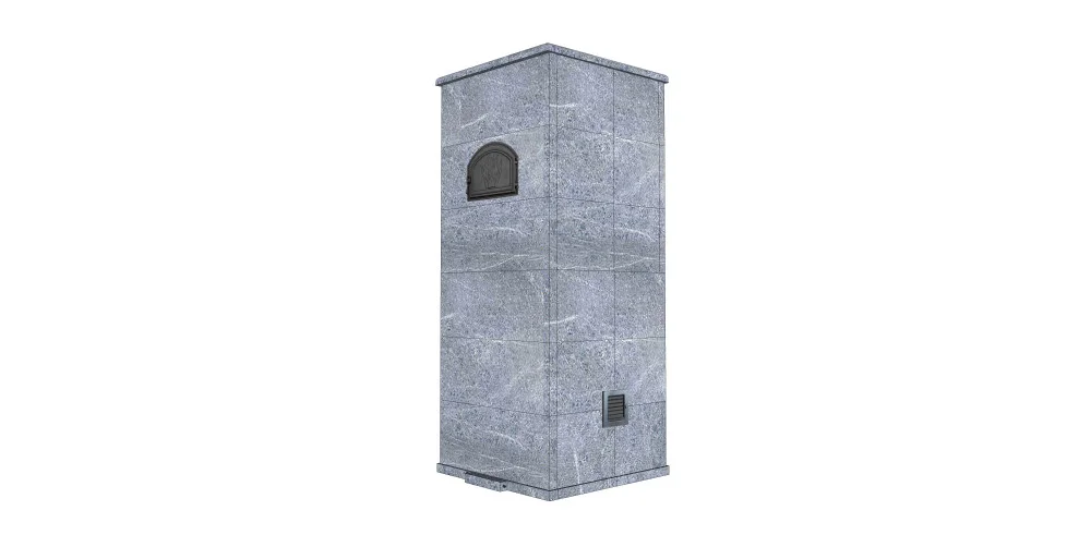 Внешний корпус из шлифованного талькохлорита или пироксенита с обработкой Антик толщиной 40 мм.