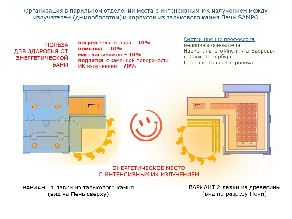 Конструкция Печей SAMPO обеспечивает стабильную температуру для парения в пределах 60-70 градусов.
