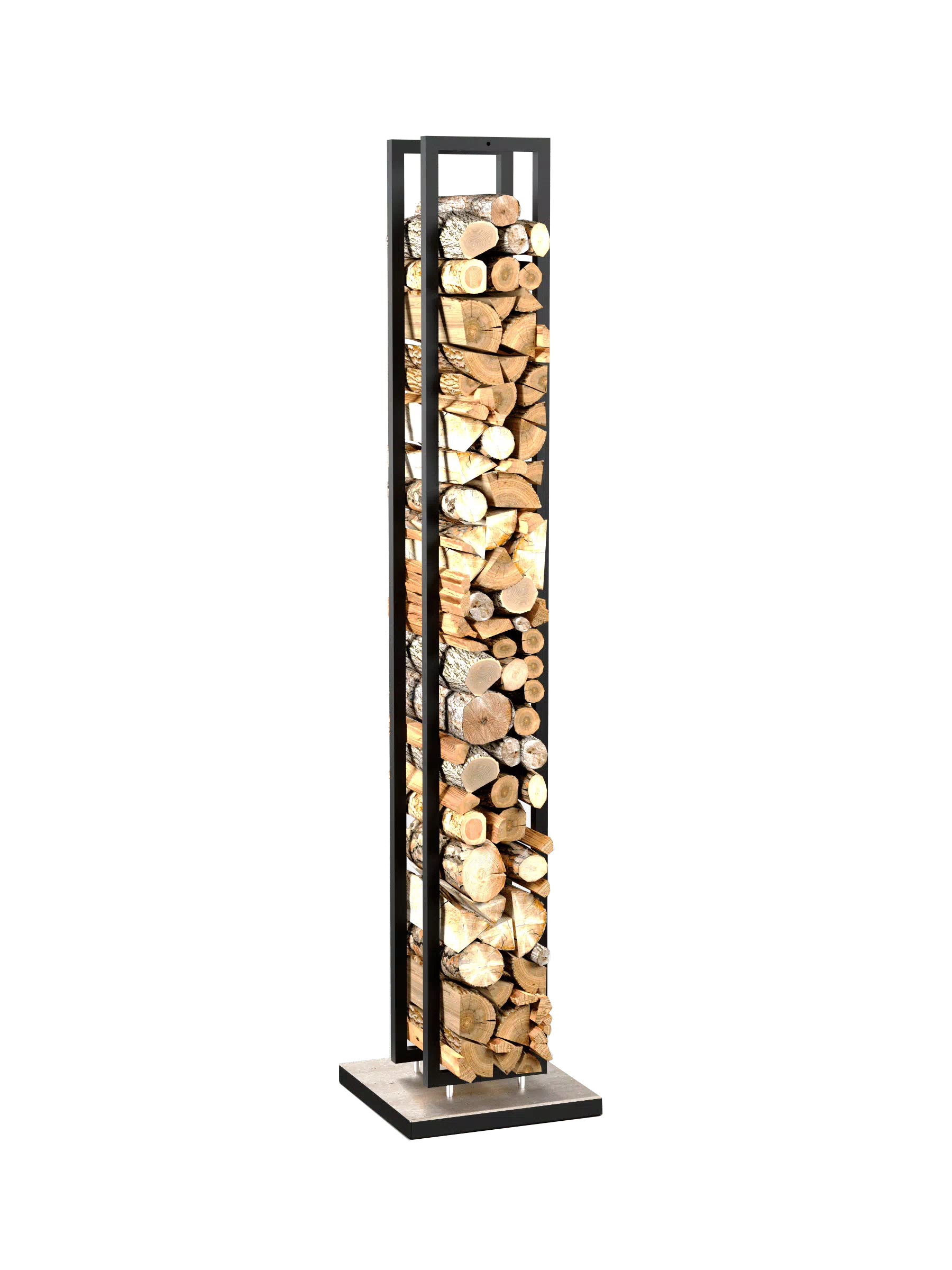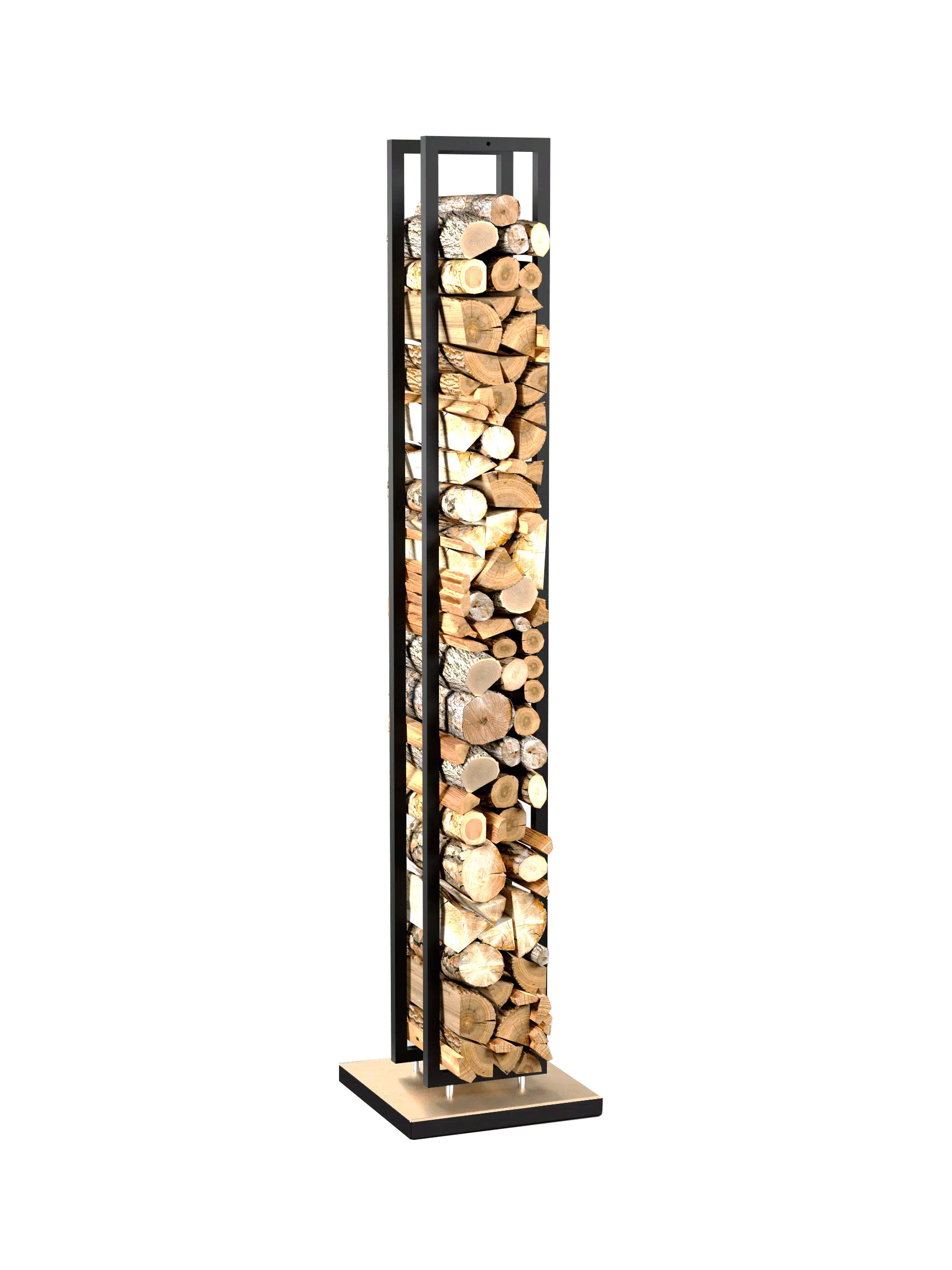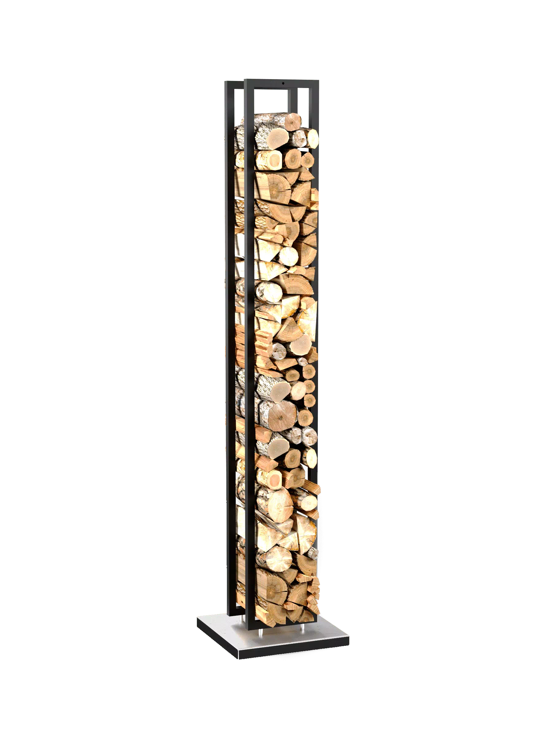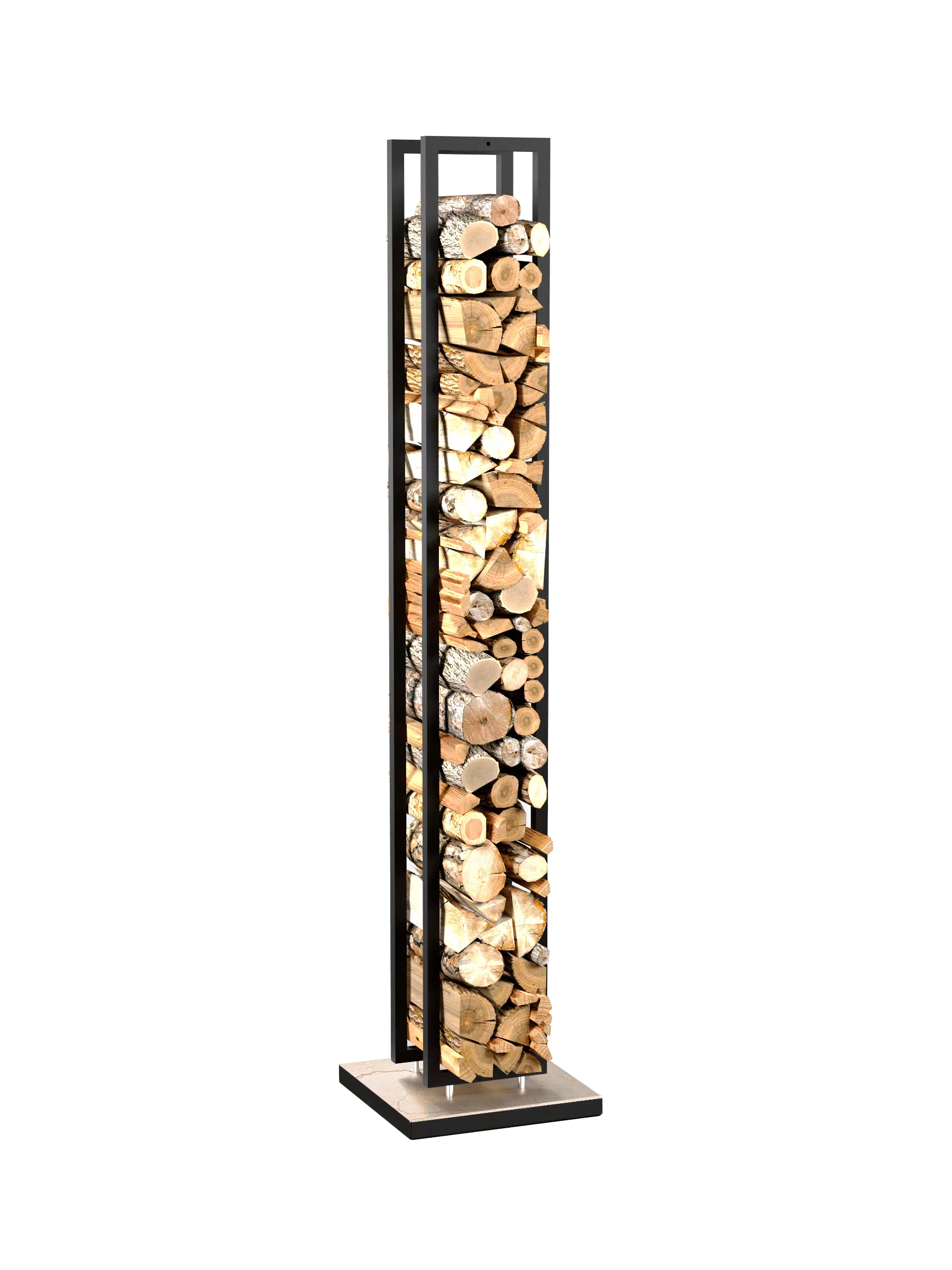 Дровник выполнен из стали в белом цвете. Основание изготовлено из мрамора.