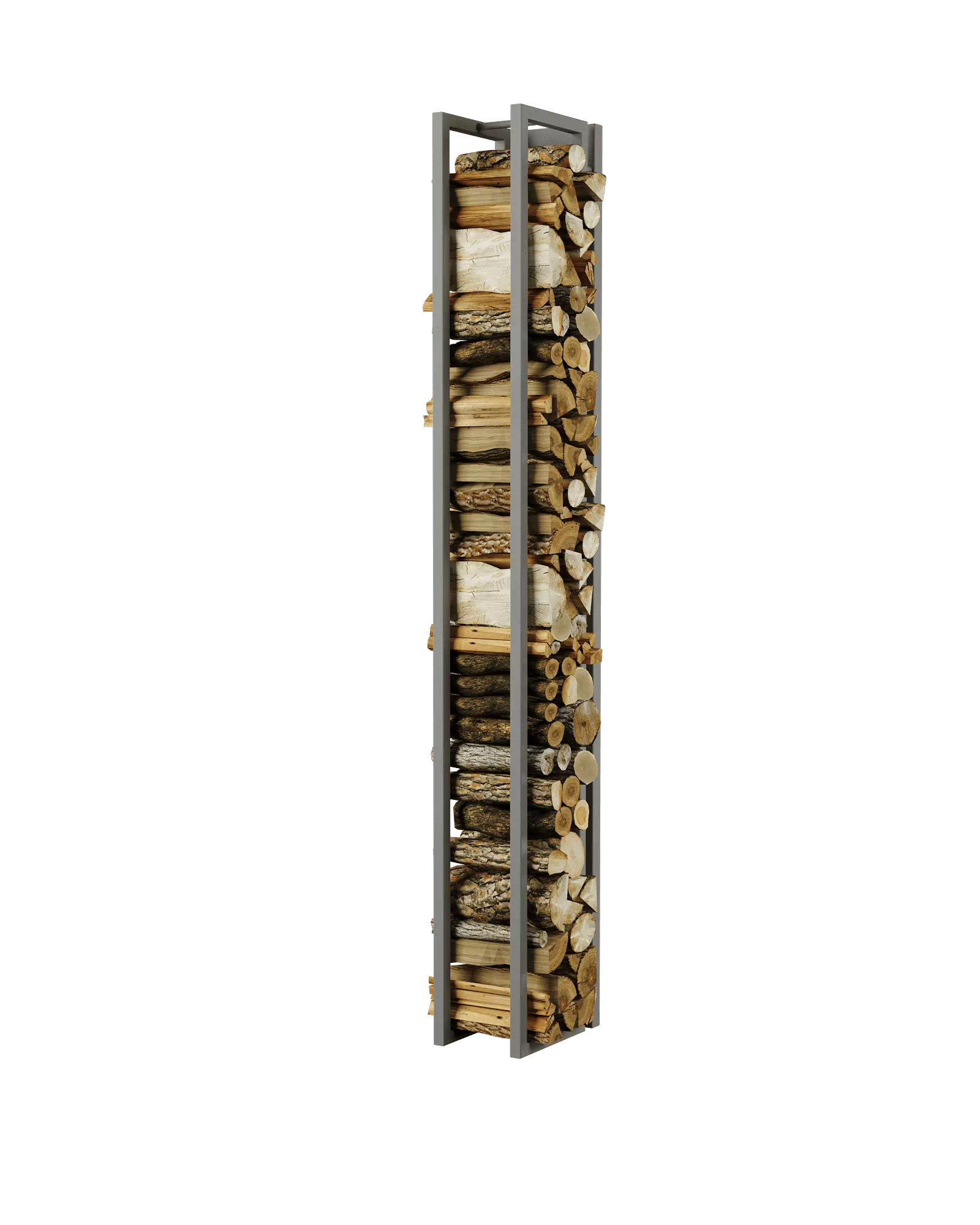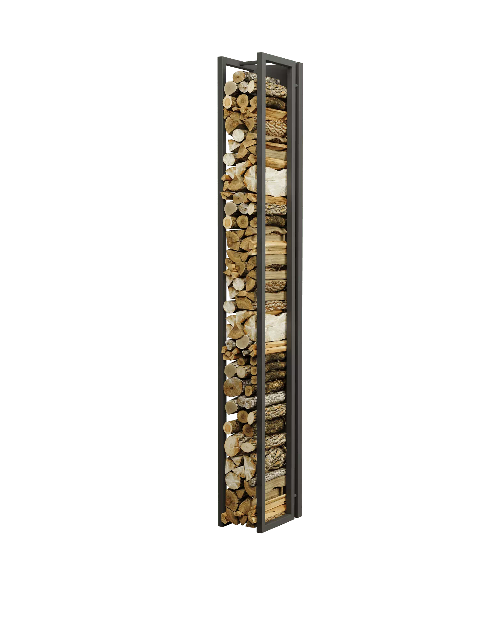 Настенный дровник Stella изготовлен из металлического профиля и окрашен порошковой краской. Три цвета на выбор: белый, черный и темный графит. Подвесная конструкция упрощает уборку под дровником, а также является оригинальным решением в Вашем интерьере.
