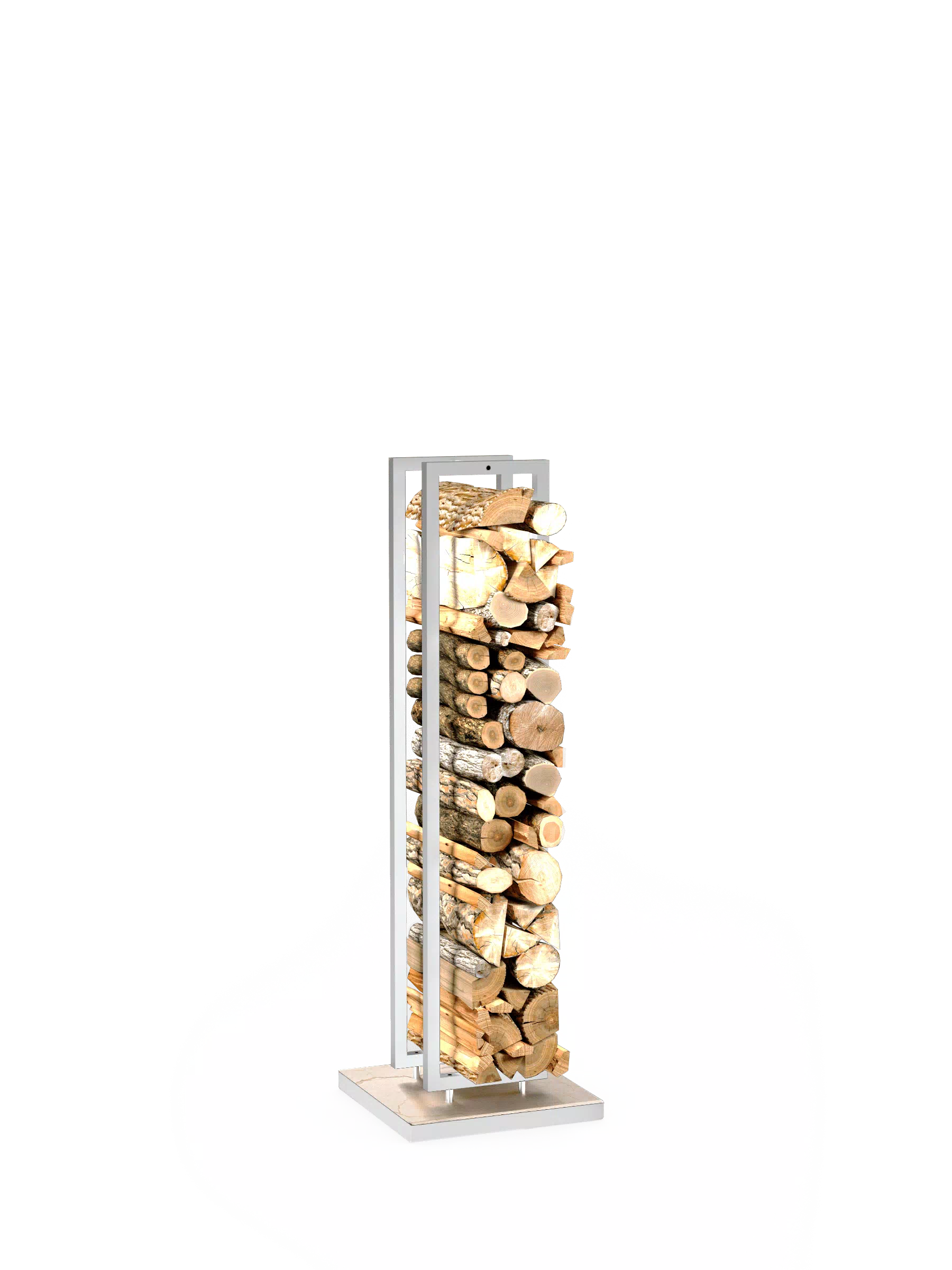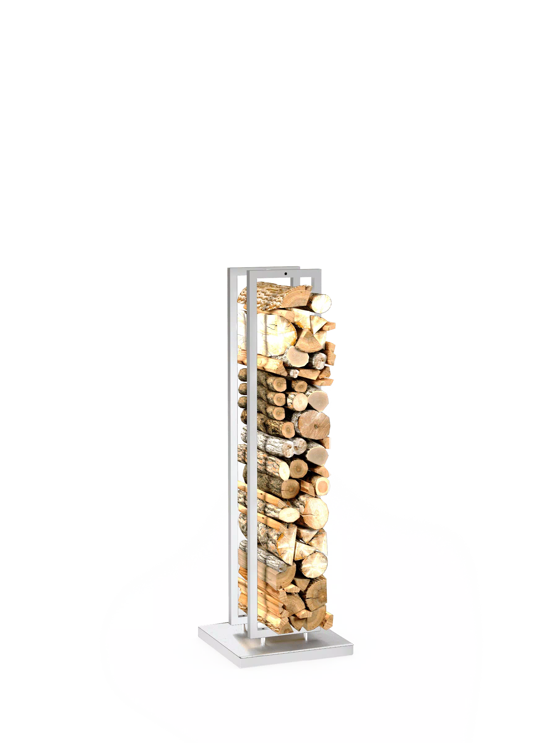 Дровник выполнен из стали в белом цвете. Основание изготовлено из мрамора.