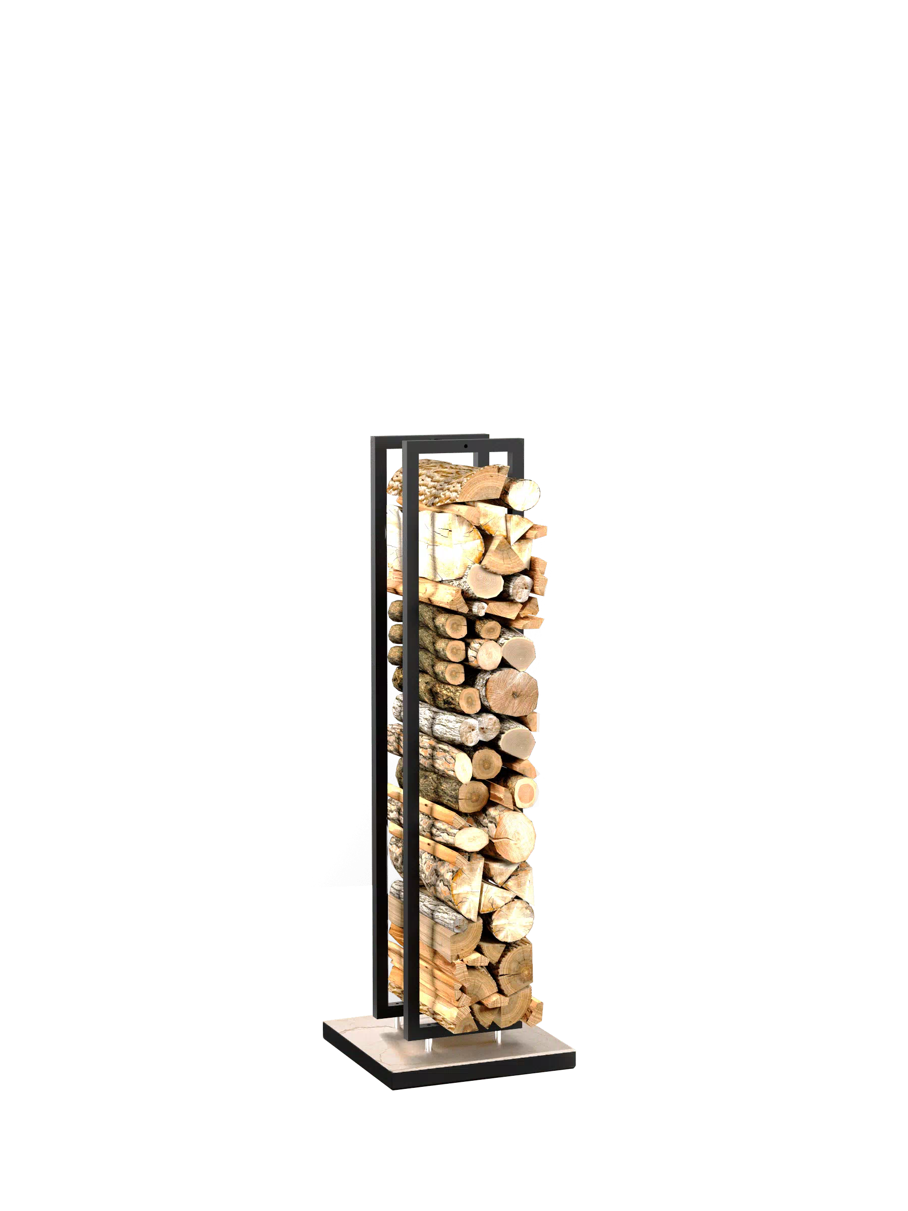 Дровник выполнен из стали в белом цвете. Основание изготовлено из мрамора.